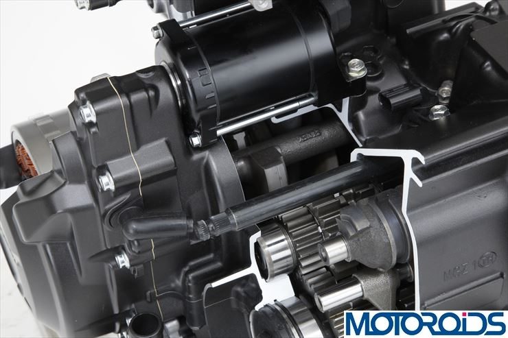 Twin engine balancers placed behind the cylinders for vibes reduction.