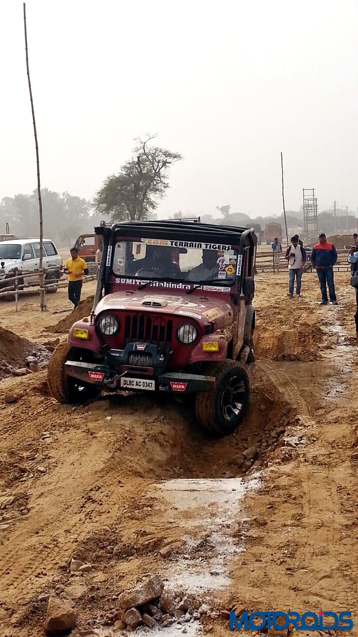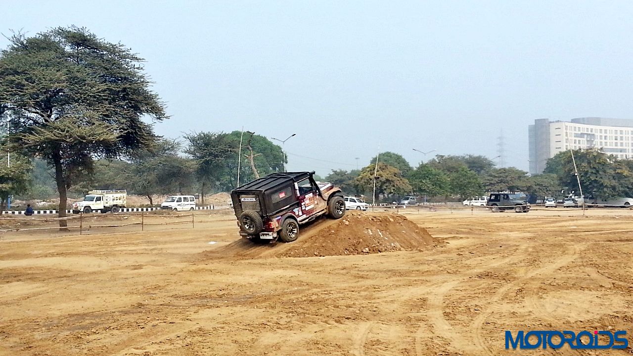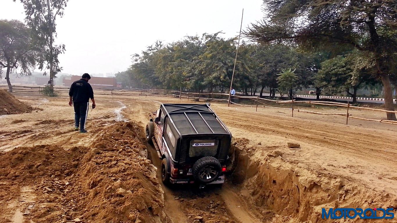 Next we were on tilt section. Tilt angle was more than what we had experienced in the past. This section again, we kept to the line, with steering straight the tyres provided grip good, enough not to send us off the line or have the Thar slip. Coming out of the tilt section, there was a deep crater. Having driven in UP, such deep craters were not unknown to me. Tyres did not break a sweat either.