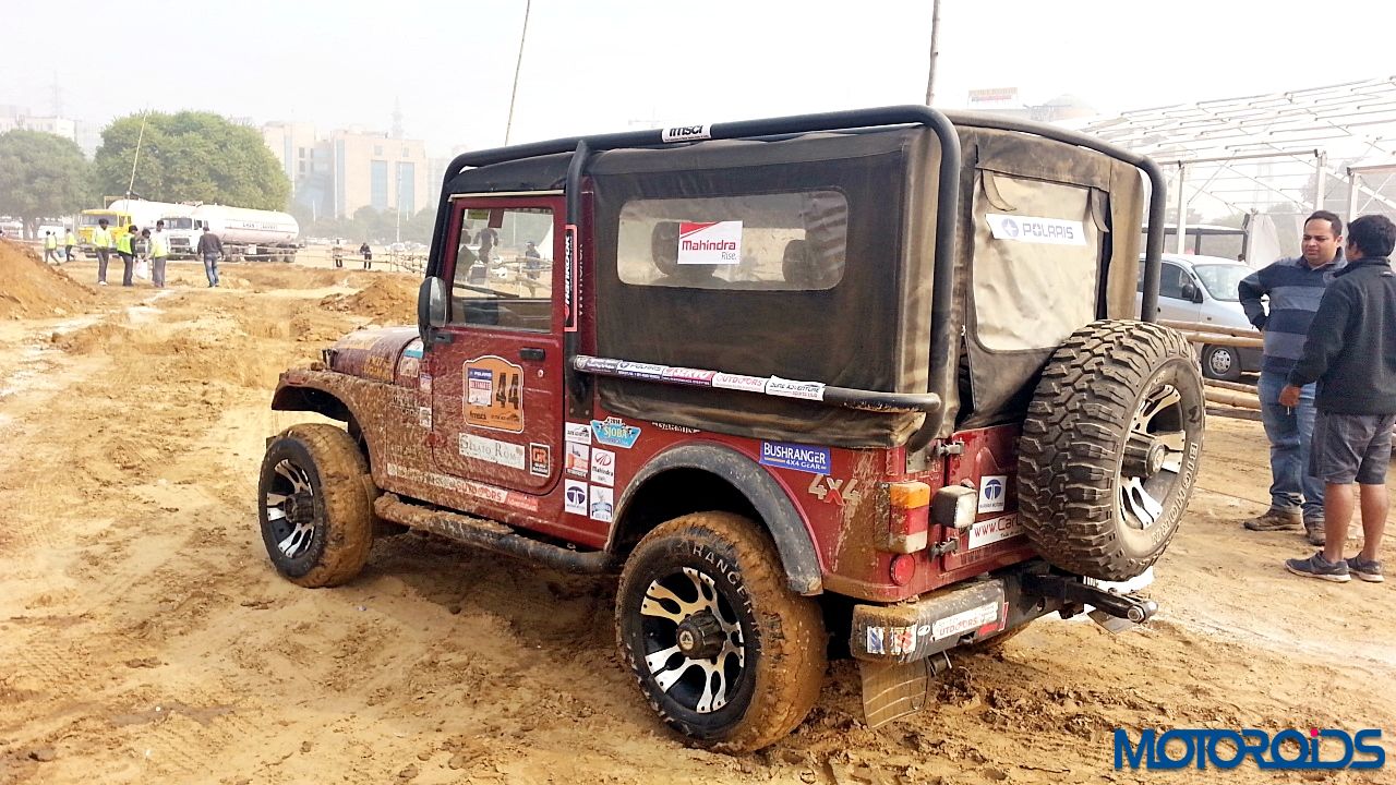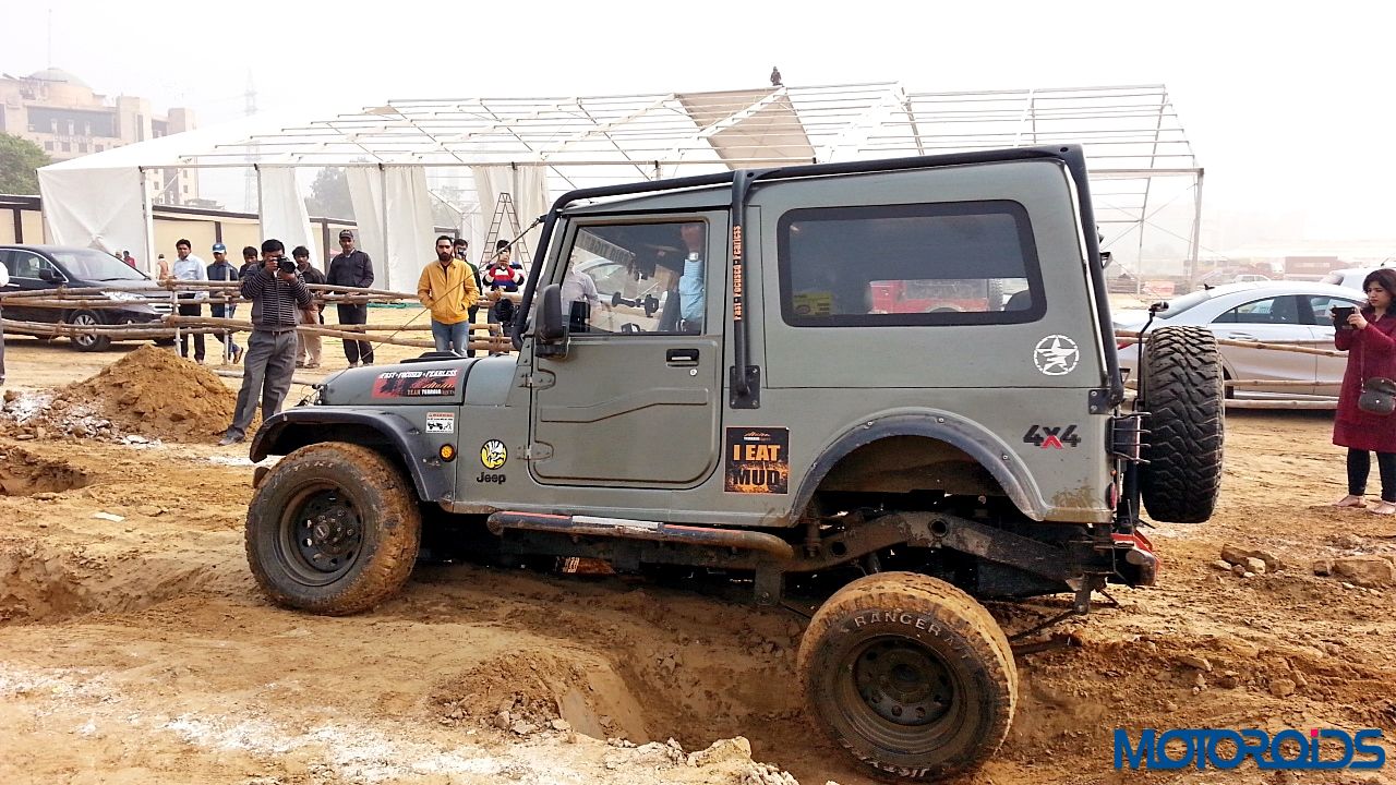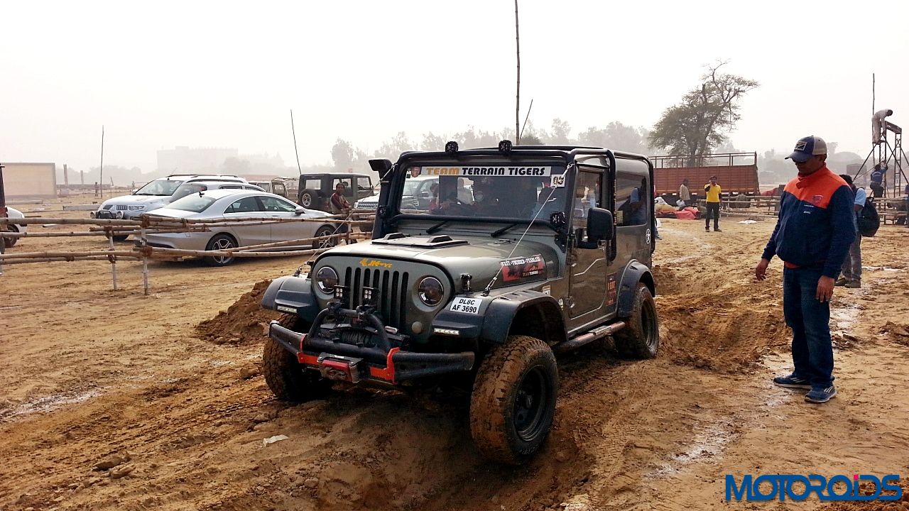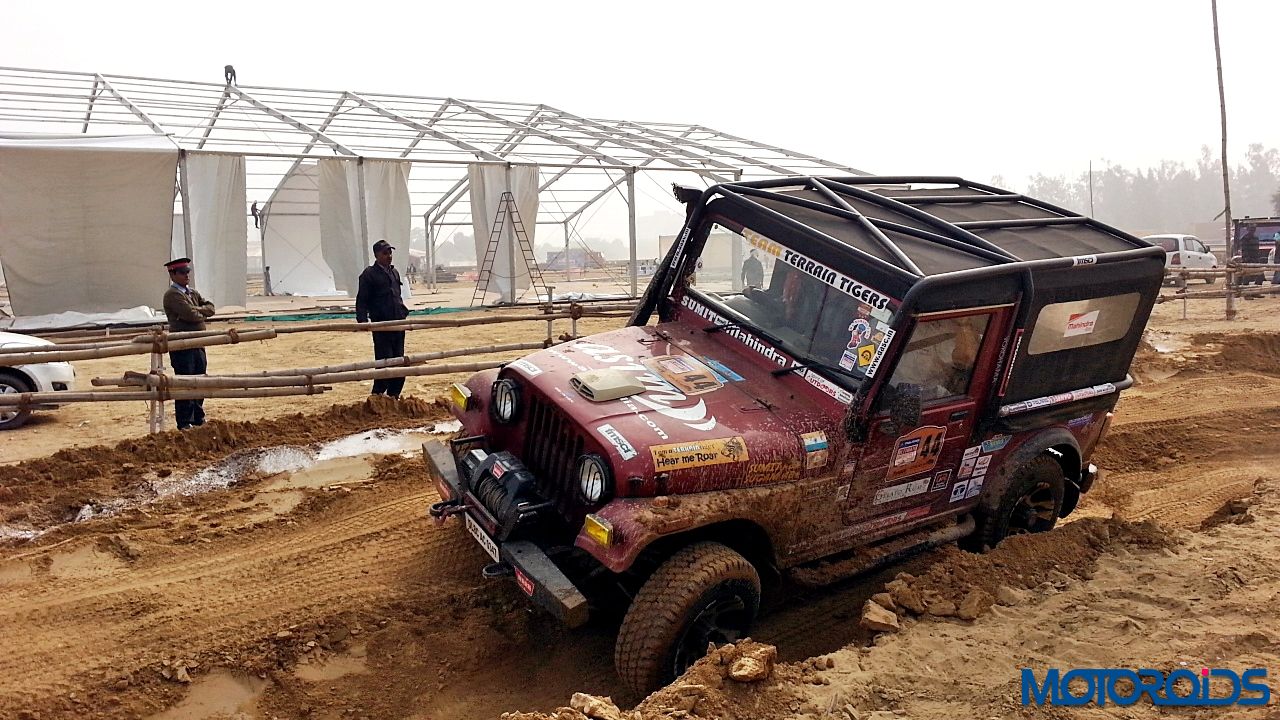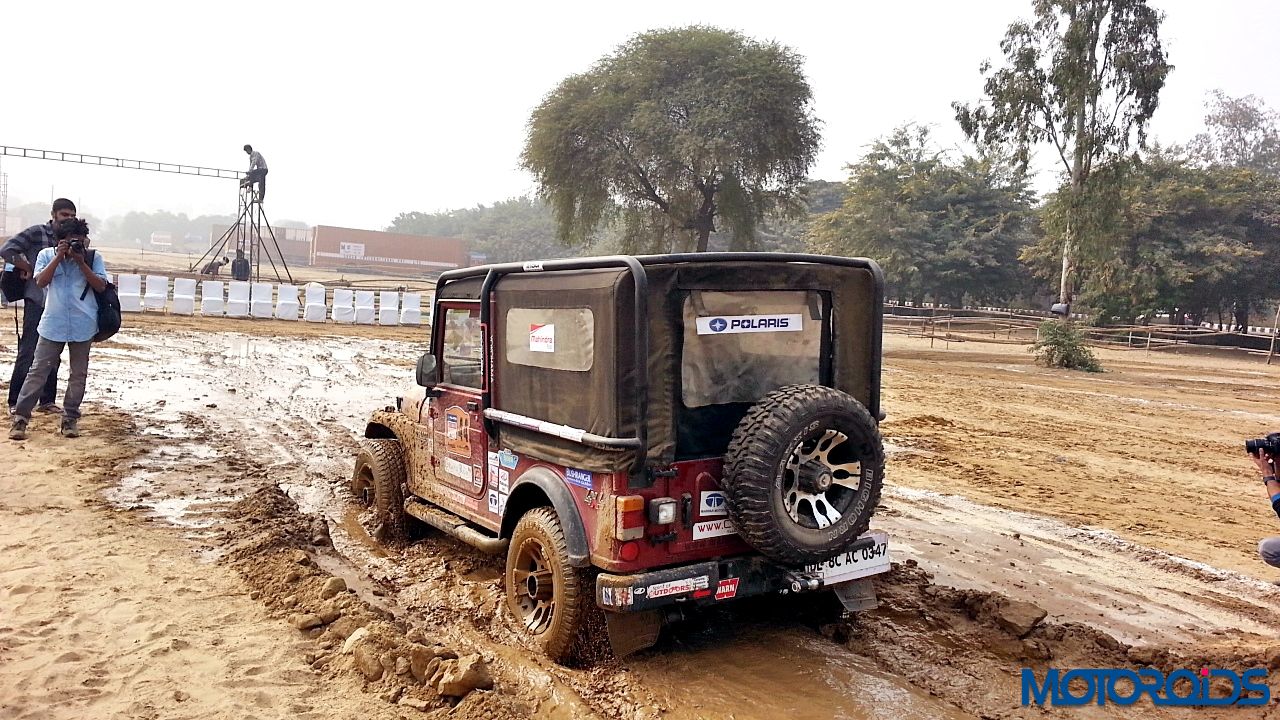 Now to the drive. We strapped ourselves up, made sure no lose objects were sliding around, put the transmission in Low Gear ratio and aligned the Thar between the two chalk lines. First we drove through the articulation section. The pits were deep and entire load came on one wheel. However, the DUAL Tread Compound and deep thread provided enough traction to pull the SUV out of the deep ruts. One thing common between off-roading and racing is that the line is extremely important. So we kept to the line and were out of the tough section easily. Wheels would spin with hard throttle but keep your right foot under control and the tyres would throw out the dirt and pull you out.