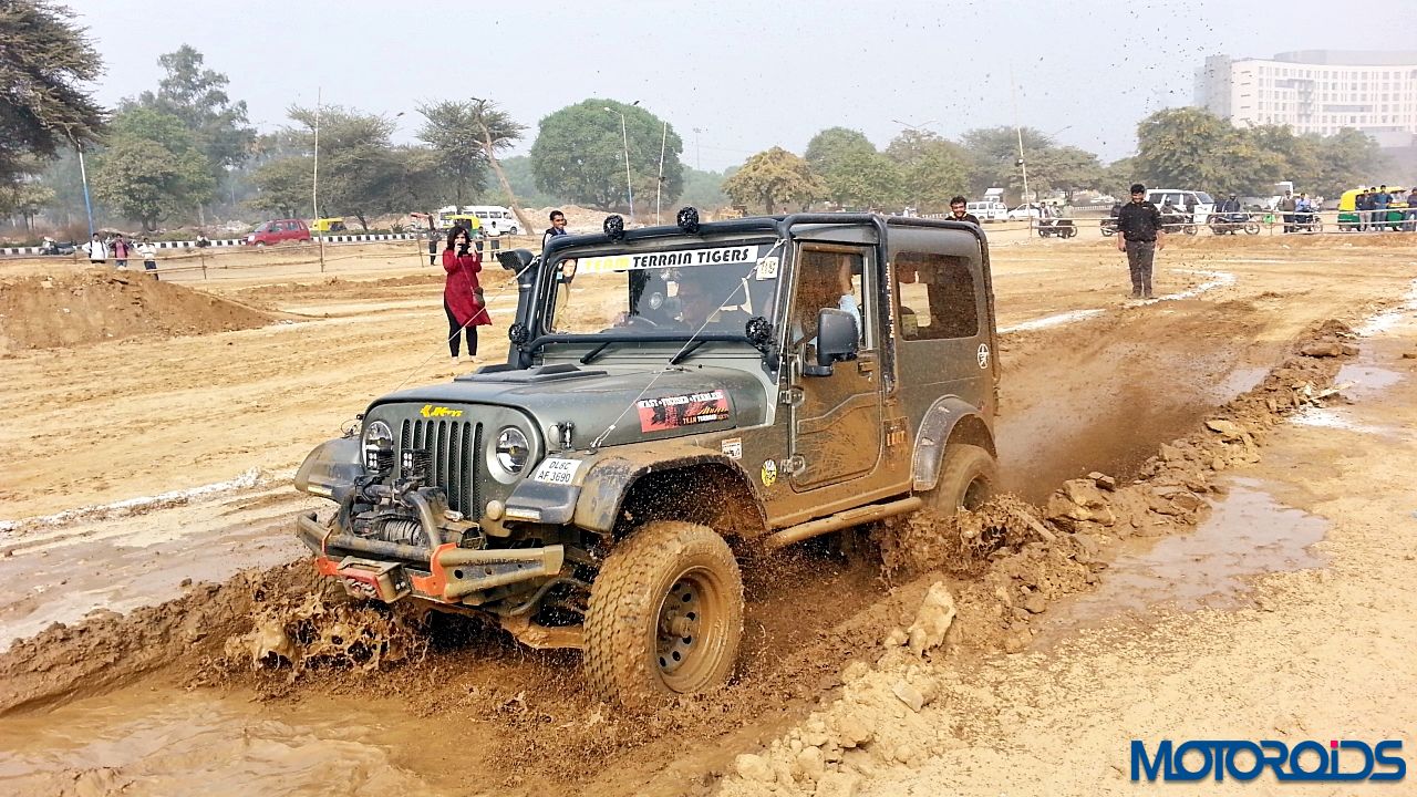 As soon as we got out, we gave the Thar some beans to see how the tyres would do in a straight stretch of muddy trail. While there was initial spinning, the tyres found their comfortable position and pulled the Thar ahead. Plateau section was similar to the deep rut section.