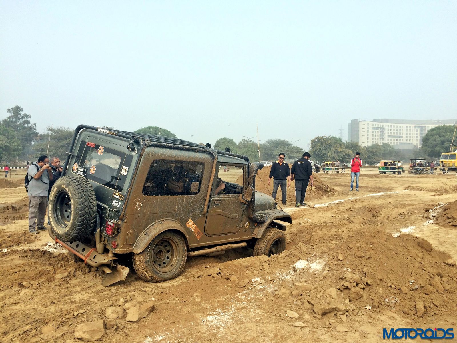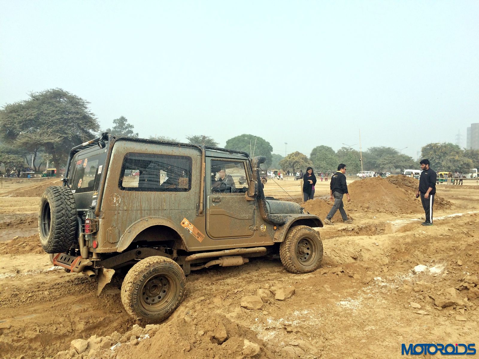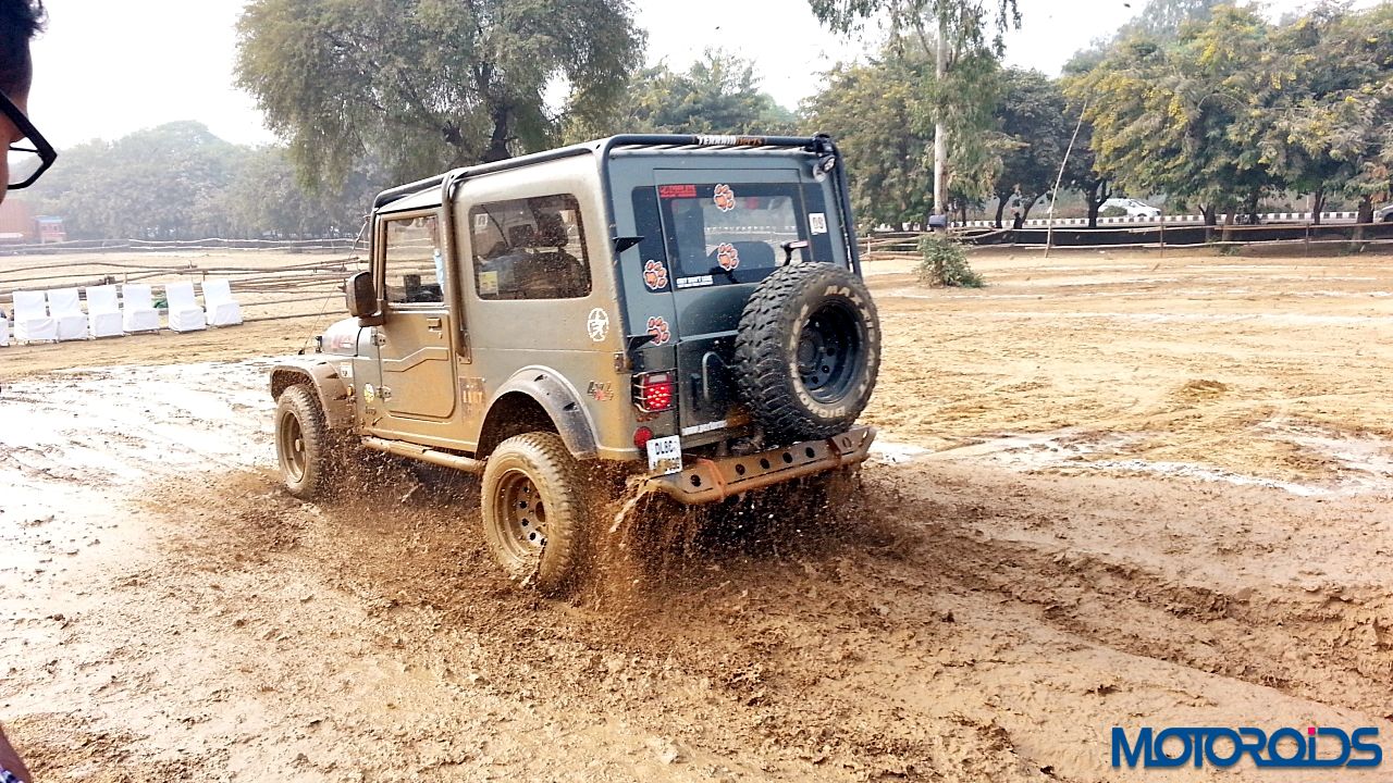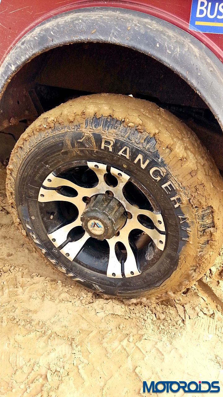 Then came the real fun part. The mud section. A long pit was filled with water and we just powered right through it. Only scream we heard came from the photographer standing not too far as we almost splashed his expensive camera. Thankfully no damage was done. The tyres did not spin or lose traction even in soft mud. However, once the mud got into the grooves, we felt more spinning in some sections.