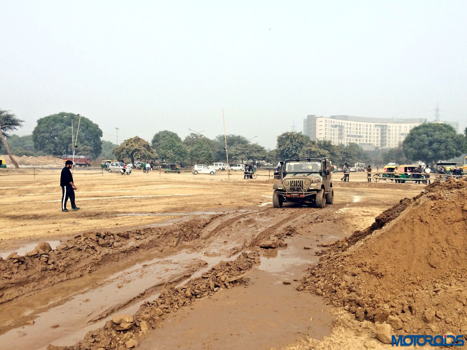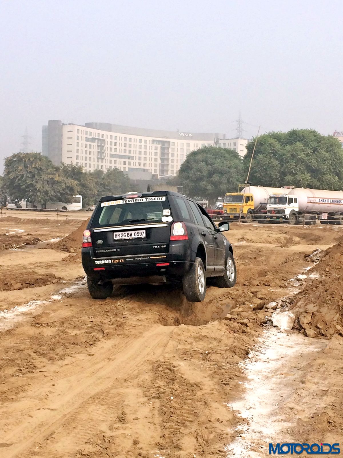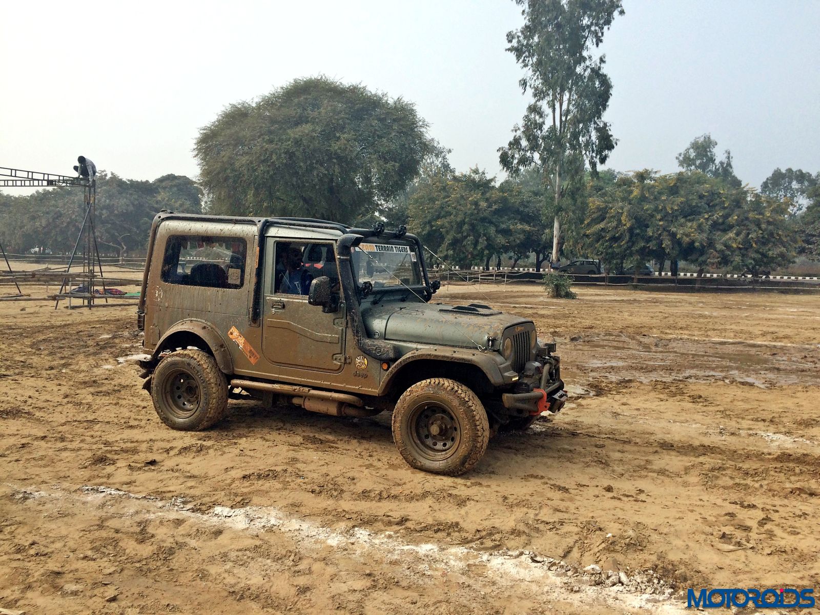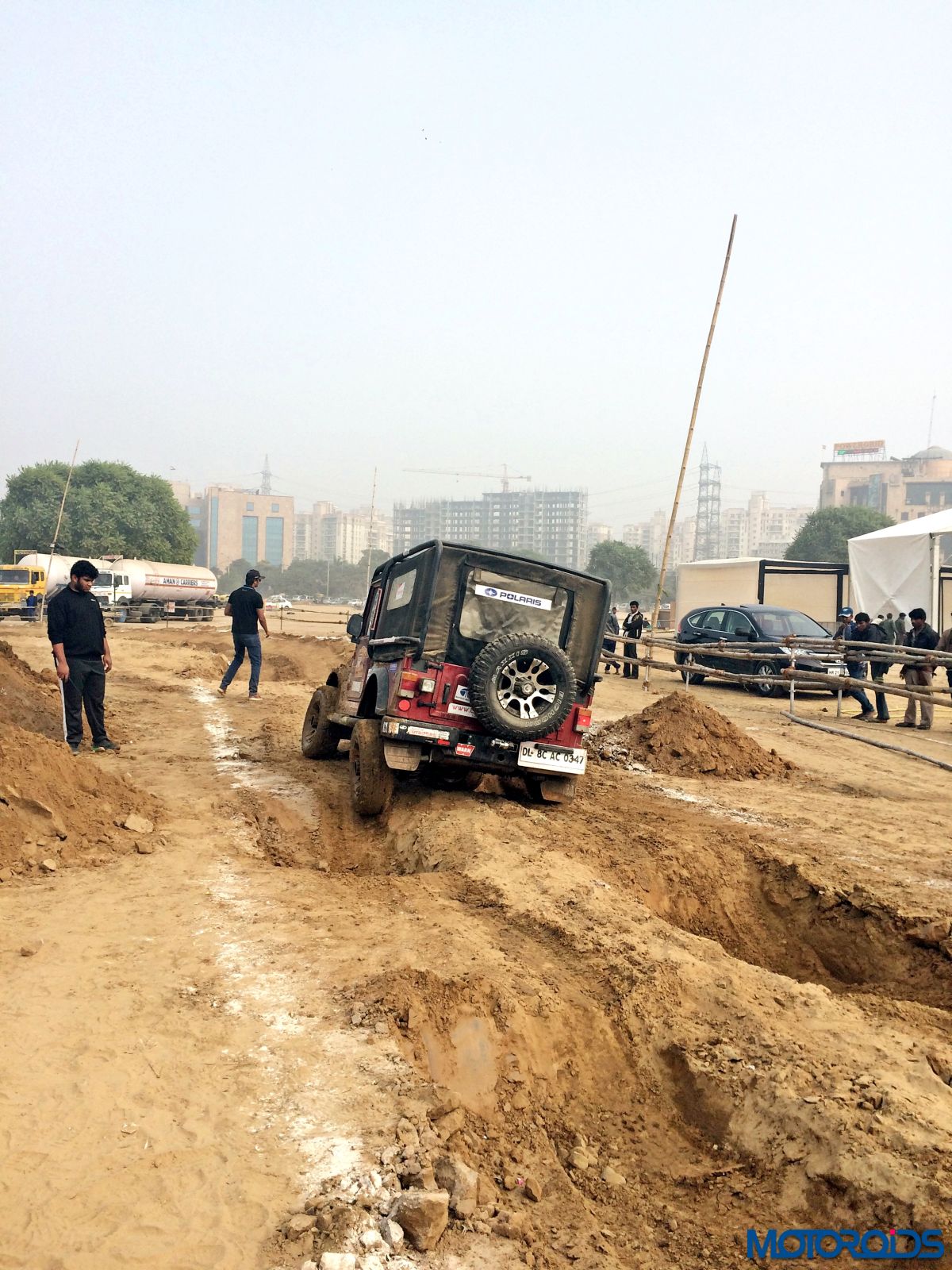Then came the real fun part. The mud section. A long pit was filled with water and we just powered right through it. Only scream we heard came from the photographer standing not too far as we almost splashed his expensive camera. Thankfully no damage was done. The tyres did not spin or lose traction even in soft mud. However, once the mud got into the grooves, we felt more spinning in some sections.