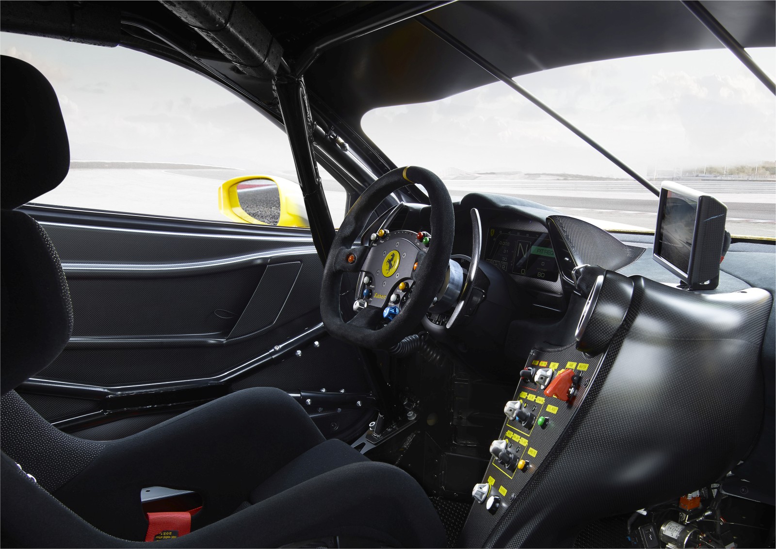 To achieve the technical objective of increasing the car’s aero efficiency while respecting the design, the engineers worked closely with the Ferrari Styling Centre. The front radiator layout was reworked, inverting the rake so that they are now inclined towards the rear. This solution is claimed to improve the air flow over the radiators in racing conditions whilst, at the same time, reducing drag.