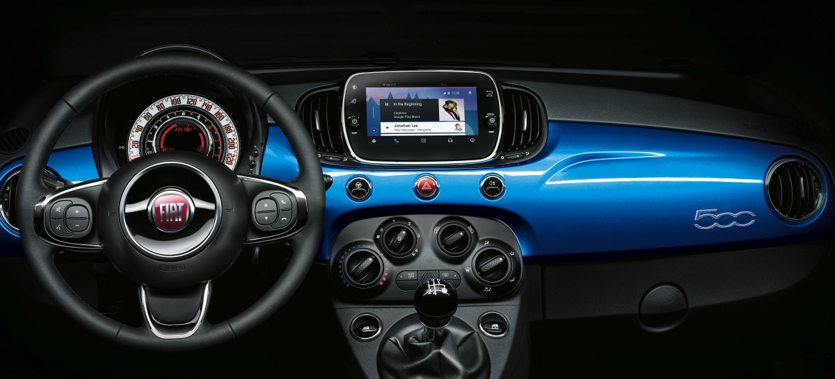 Besides marking the sixtieth anniversary of the Fiat 500, 2017 also sees the debut of the Fiat 500 Mirror. This special edition marks the introduction of Apple CarPlay and Android Auto on the Fiat 500. The Fiat 500 Mirror is available in a choice of five exterior colours, including Electronica Blue, and enhances its classic look with chrome finished door mirror covers, a brushed aluminium “Mirror” badge on the B pillar and 14-inch wheels with chrome finished wheel covers. 15-inch alloy wheels are also available as an option.