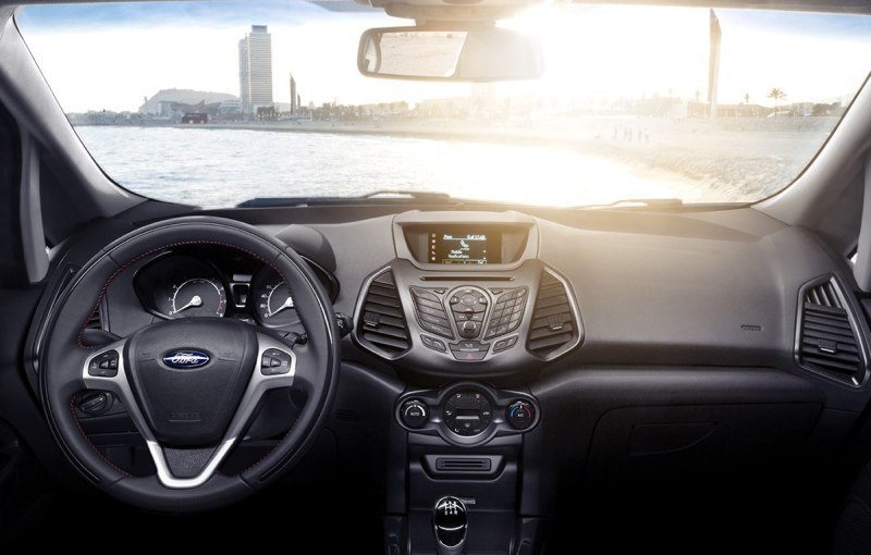 The car also comes equipped with a full quota of airbags and all the usual safety features. The Ford EcoSport for European market gets a new set of alloy wheels and an all black dashboard with red contrast stitching instead of the dual tone version on India spec EcoSport.