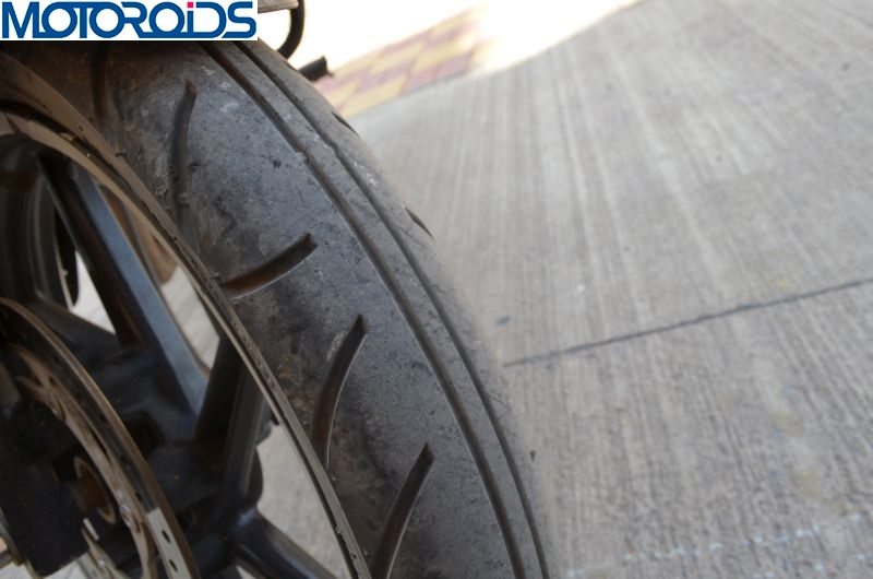Last gen Bajaj Pulsars aren’t really known for their handling prowess and while the 220 did get a better (read: double cradle) frame and longer swingarm, it wasn’t a really sharp apex hunting tool. However, the 220 is definitely an improvement over the P180 UG3 and is not all that reluctant with corner carving. The P220 comes factory fitted with MRF Zappers/Eurogrips, which while not being bad, aren’t all that great with sticking to the tarmac. Hence, a tyre upgrade is surely warranted if you want to improve 220’s handling. Thanks to the 17 inch wheels, there are variety of options available and you can surely go for relatively cheap Michelin Pilot Sporty (above) if you don’t wish to spend Pirelli Sport Demon (below) kind of money.