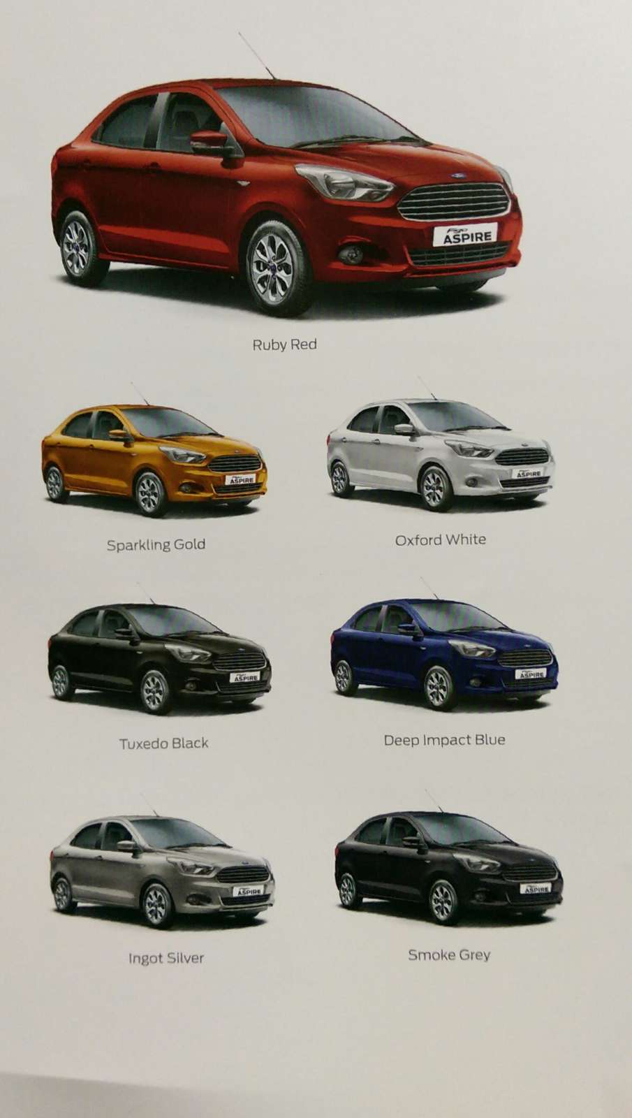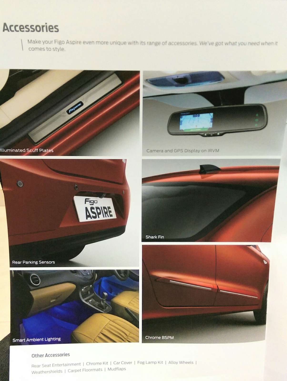 Colours available on the Ford Figo Aspire are: Ruby Red, Oxford White, Deep Impact Blue, Tuxedo Black, Ingot Silver, Sparkling Gold, and Smoke Grey. Customers can choose to kit out their Figo Aspire with Ford’s accessories such as ambient lighting, rear seat entertainment system, chrome kit, carpet floormats, and rear parking sensors. There’s also a rear-view mirror integrated reversing camera that doubles up as the display for the navigation system, illuminated scuff plates, among others.