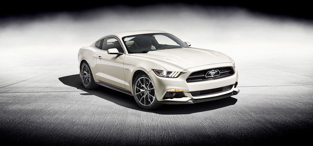 The 2015 Ford Mustang 50 Year Limited edition has been unveiled by Ford commemorating the iconic muscle car’s 50th anniversary. Based on the new 2015 Mustang GT fastback with performance pack, the Limited Edition is powered by 5.0-liter V8 engine grunting out 420+ bhp of power and 528 nm of twisting force. The car would be available in six speed manual with Torsen differential of 3.73:1 or automatic transmission with a limited-slip rear differential with a 3.55:1 final drive ratio. Ford is enhancing the Limited Edition with -piston Brembo front brakes and original Y spoke 19-inch alloy wheels mounted with Y-speed-rated Pirelli P-Zero summer tyres.