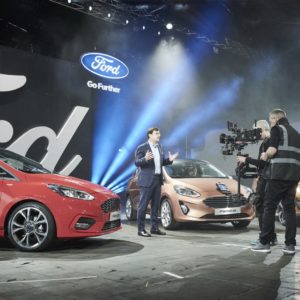 Ford revealed four distinctive production variants of the next generation Fiesta: the Fiesta Titanium, the Ford Performance-inspired Fiesta ST-Line, the upscale Fiesta Vignale and the Fiesta Active crossover. Apart from crisp, new exterior styling, the next-generation Ford Fiesta’s refurbished interiors offer a floating high-definition touchscreen and Ford’s SYNC 3 communications and entertainment system. The new Fiesta also will be the first Ford to deliver a premium B&O PLAY Sound System.