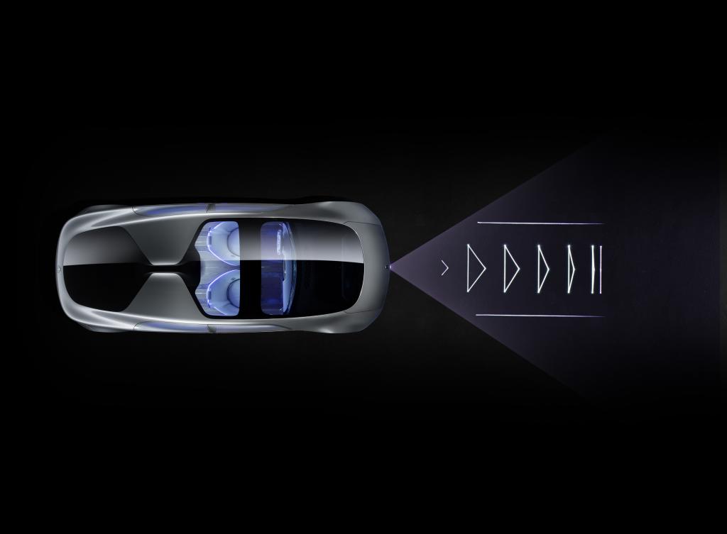 With you piloting the F 015, the exterior LEDs change from blue (autonomous) to white (manual) to let people outside the car know who/what is in control. Just like in the Future Truck, those LEDs are the medium to communicate with the outside world. To warn other minion motorists, the words “stop” or “slow” are displayed behind and the F 015 can even audibly acknowledge pedestrians to “please go ahead”.
