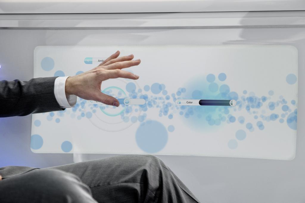 As soon as the doors open, the chairs turn around to greet your wealthy bottom, and then swivel back inside. With the doors shut, passengers have access to six interactive, touch screen displays that form what Mercedes calls a “digital arena”. The screens also use eye-tracking and gesture controls when physically touching something becomes too much of a chore. Everything, included the infotainment system and the climate can be controlled through those screens.