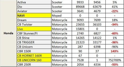 The 125cc segment was a mixed bag with certain companies making marginal losses in terms of sales where others putting up some decent numbers. The 125cc products from Bajaj, including the KTM 125 Duke remained in red. While the Discover 125 exports came down by 56%, the KTM 125 Duke fell by 38%. The Honda CBF Stunner/Fi came down by 60% with 2,740 units exported against 6,827 units in previous financial year. Suzuki Slingshot also witnessed a 38% fall.