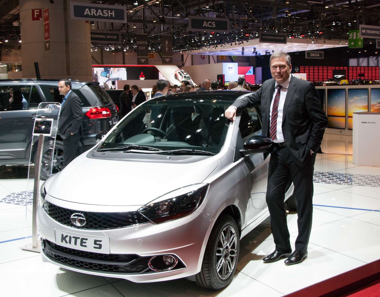 At the ongoing automotive extravaganza in Geneva, Tata Motors showcased three models – a personalized version of the all-new Zica..er..Tiago hatchback, the new Hexa Tuff and the Kite 5 compact sedan concept. All these models have already been showcased at the Auto Expo in Greater Noida last month.