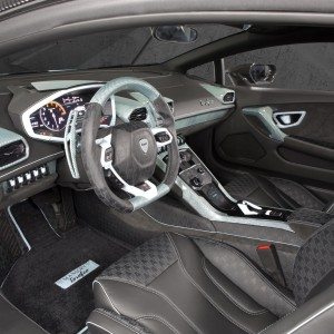 Making the standard Huracan look ordinary, the Torofeo features a newly designed carbon fiber body kit, a new front apron, side skirts, a large rear wing, an even larger diffuser and enhanced wheel arches. Thanks to all those additions, the Mansory Torofeo is 30mm wider at the front and 40mm wider at the Kim Kardashian end of things. The toothy daytime running lights paid a visit to the dentist and have come back with some crystal treatment. On the inside, this mad looking igloo gets Alcantara seats, a new sportier steering wheel, aluminium pedals and tons of carbon fiber bits.
