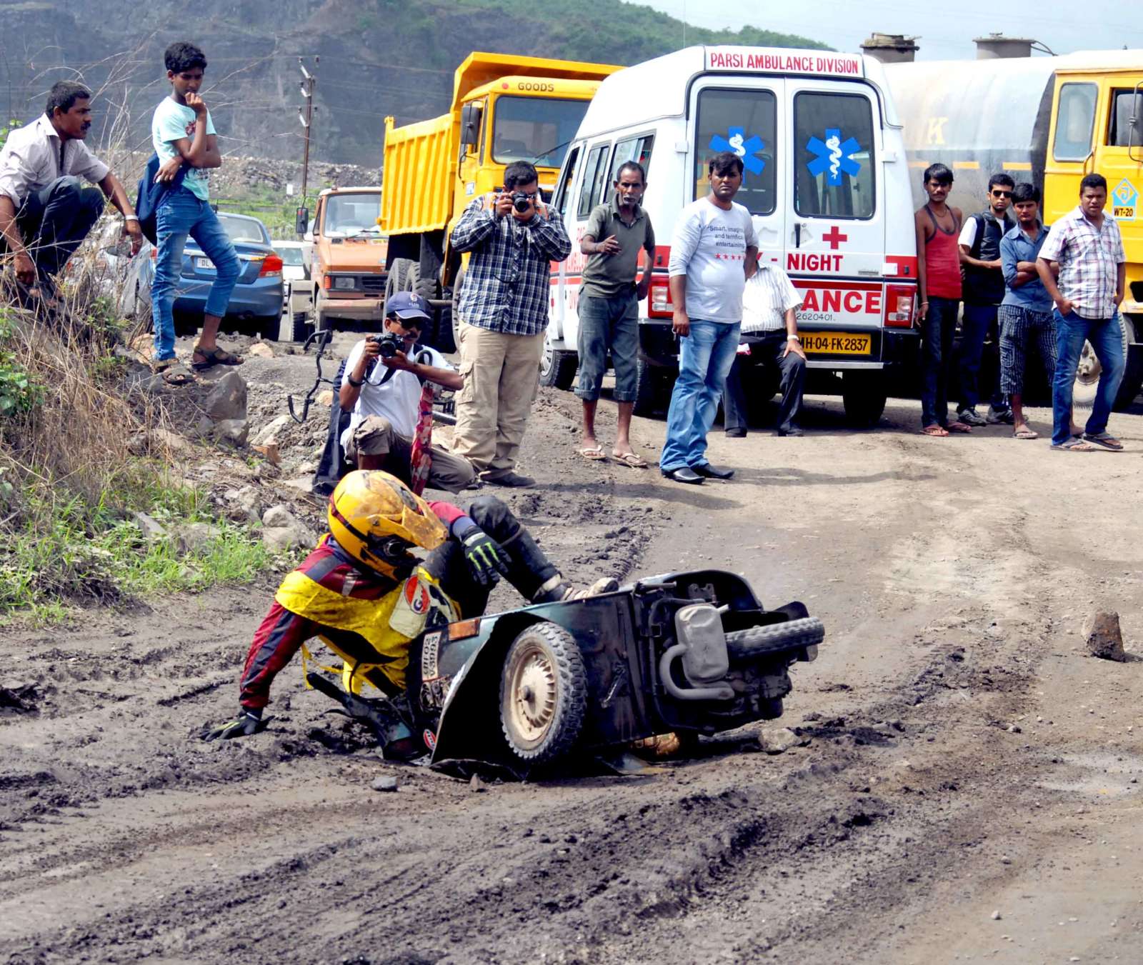 This year’s rally saw 36 racers participate; out of which 5 were first timers for the Monsoon Rally. All eyes were set on seasoned campaigners like Muzaffar Ali and Rustom Patel, winner of last year’s rally and winner of Mumbai region respectively. The Rally was divided in 2 stages, Tarmac and Mud. From the start point at Parel, racers made their way to Navi Mumbai region, where a special track had been chalked amongst the hilly terrain, which comprised of mud, gravel, stone, peaks and sudden drops. Racers had to complete 3 laps of the circuit that was made through the hills.