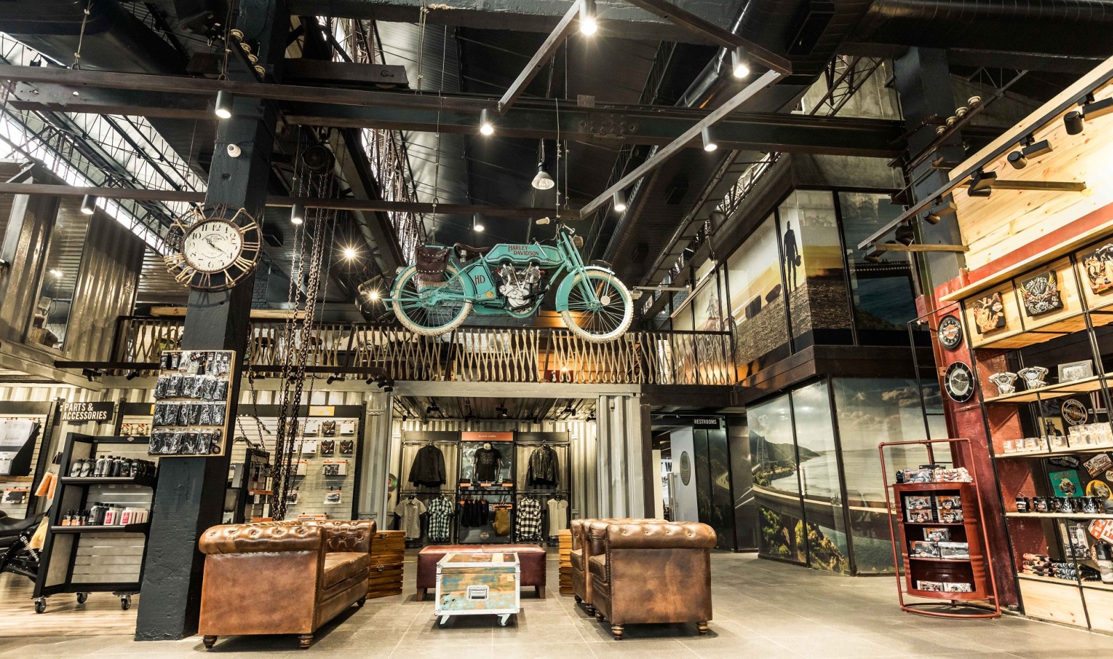 With an exclusive lounge for H.O.G members, a rooftop café, a ride in café, gaming zone, DJ lounge, lockers and showers, Red Fort Harley-Davidson has been designed to deliver personalized experiences. From a Black Label lounge inside a shipping container to a Door to Freedom, as a motorcycle delivery idea, the sprawling dealership caters to the nonconformist spirit of motorcycle enthusiasts. The walls are festooned with graffiti and photo gallery dedicated to the personal expression and creativity that reflect the Harley-Davidson culture.