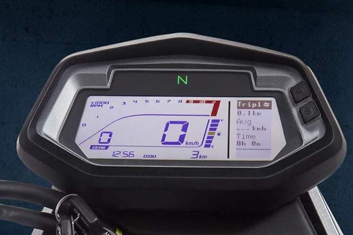 Visually, the motorcycle uses a spherical full LED headlight, a tall-set front fender, a windscreen, dual-tone knuckle guards, and a large front wheel. All the ride related data will be showcased on a full-digital instrument console. The instrument console features a digital tachometer on the top, a gear position indicator on the left corner, and the speedometer in the centre.