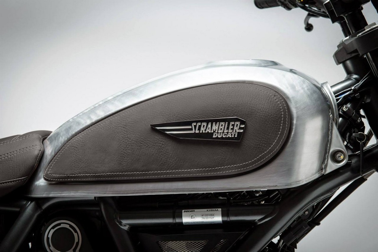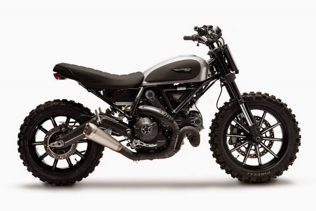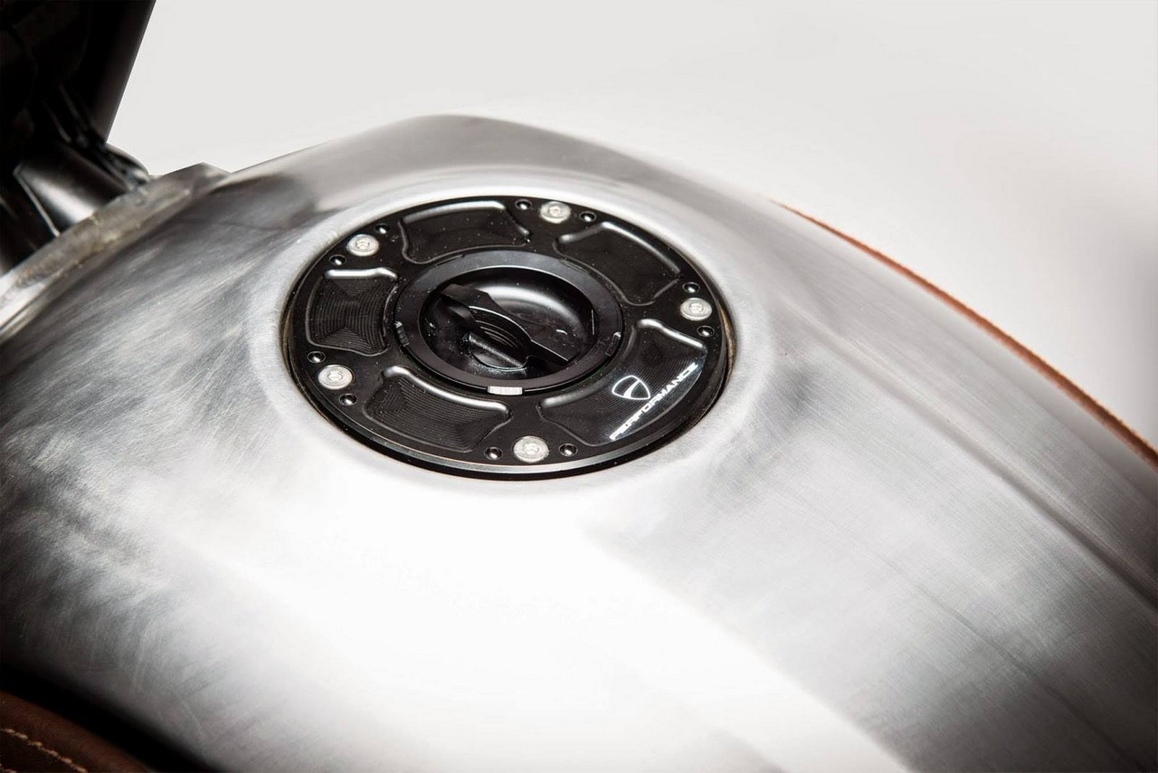 The fuel tank is stylishly leather-clad on either sides while the stock fuel lid has been replaced by a CNC-machined fuel cap. An after market exhaust, has tape wrapped around pipes, giving the Ducati Scrambler Dirt Track Concept a more rugged look and probably adds some more horses over the stock motorcycle. Topping off the mean, off-road inspired look of the Ducati Scrambler Dirt Track Concept is the paint work that replaces the glossy look with a rugged finish.