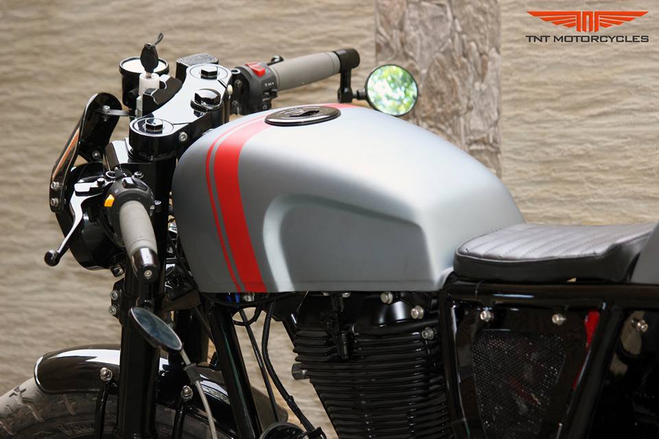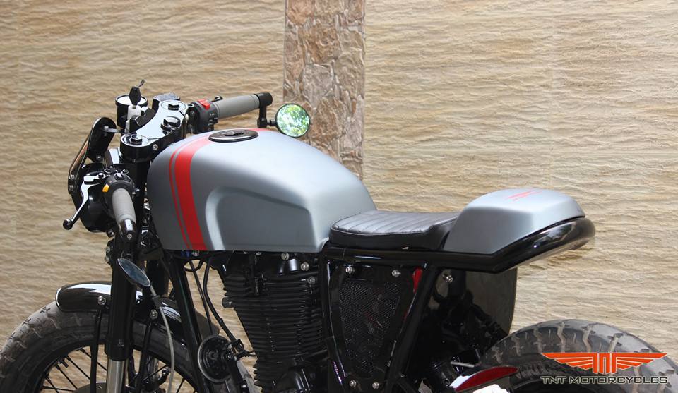 The folks at TNT Motorcycles have modified a Royal Enfield Continental GT with a massive visual overhaul and turned it into one mean looking machine. The motorcycle gets new, custom built body panels, a new paint scheme and a few mechanical tweaks.