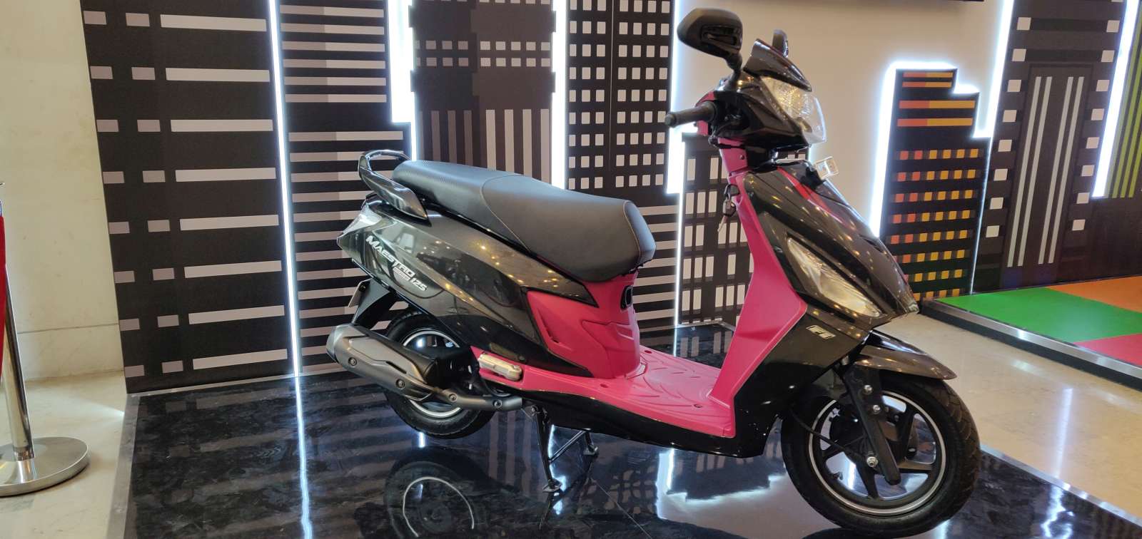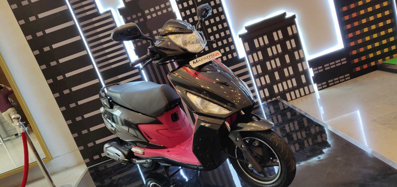 This 125cc variant of the Maestro Edge isn’t too different than the 110cc variant. There are some differentiating elements though, like the LED-lit superman logo on the apron, a two-tone paint job, and different font work for the instrument console. The exhaust system looks different and the FI variant is available in two, two-tone colour options – Pearl Fadeless White and Brown and Panther Black with Pink-ish Red.