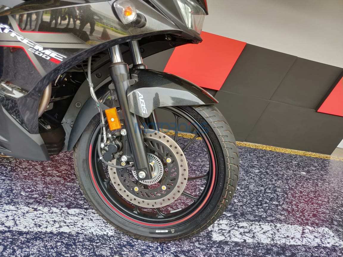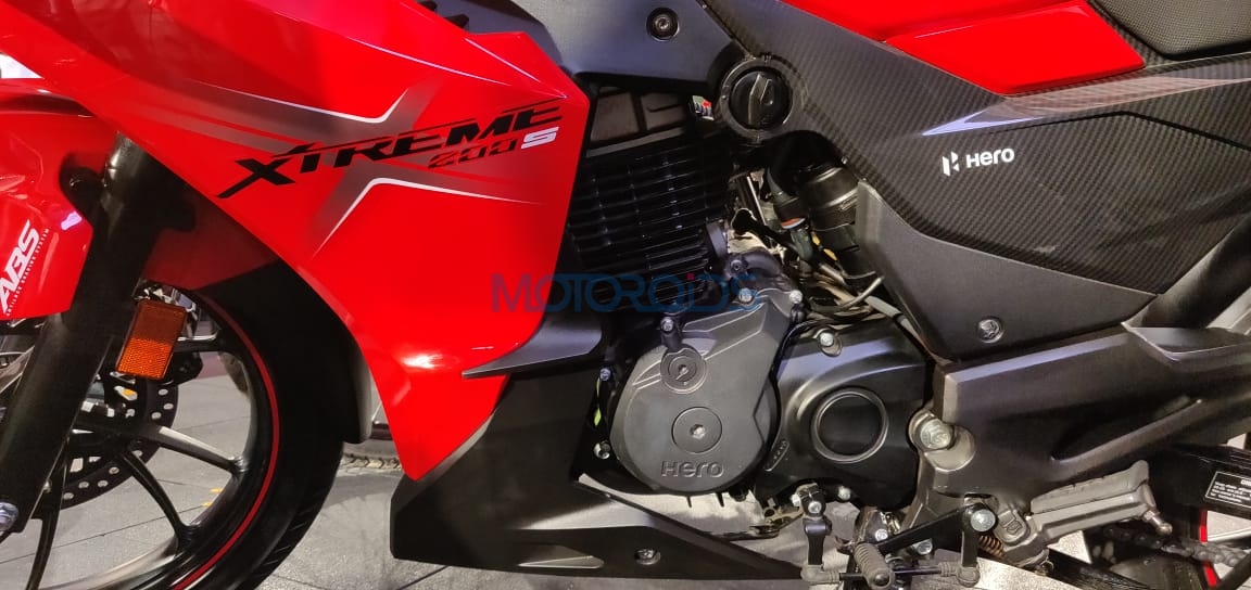 Powering the Hero Xtreme 200S is a 200cc engine which cranks out 18.4 PS @ 8,000 rpm and 17.1 Nm of torque @ 6500 rpm. The motor is a two-valved, air-cooled, single cylinder unit which is fueled by a carburettor. Transferring power to the rear wheel is a 5-speed gearbox and the engine can be brought to life by an electric motor and a manual Kickstarter.