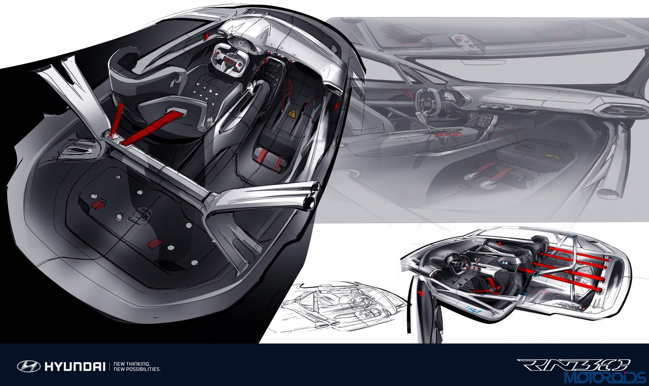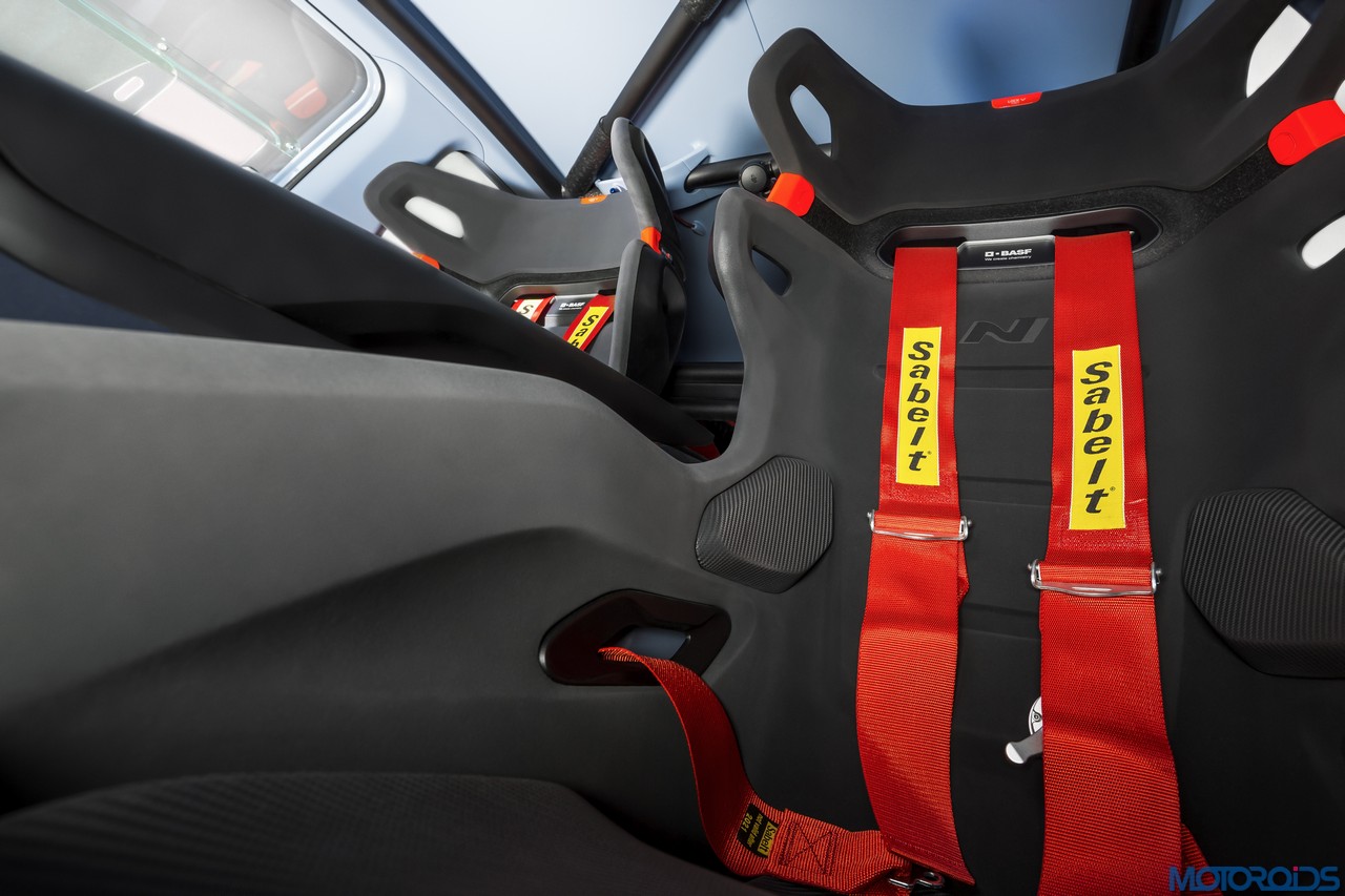 Instead of using carbon fibre reinforced polymer (CFRP) common to most high-performance cars, Hyundai has introduced all-new high-performance plastic materials on the RN30, developed in collaboration with global chemical company BASF. Claimed to be light, highly durable and environmentally-friendly, the new materials have used throughout the new concept. Inside, redundant parts were removed, while heavier parts sit in the lowest possible position. The centre of gravity is said to be lowered further by pushing back and lowering the seats.