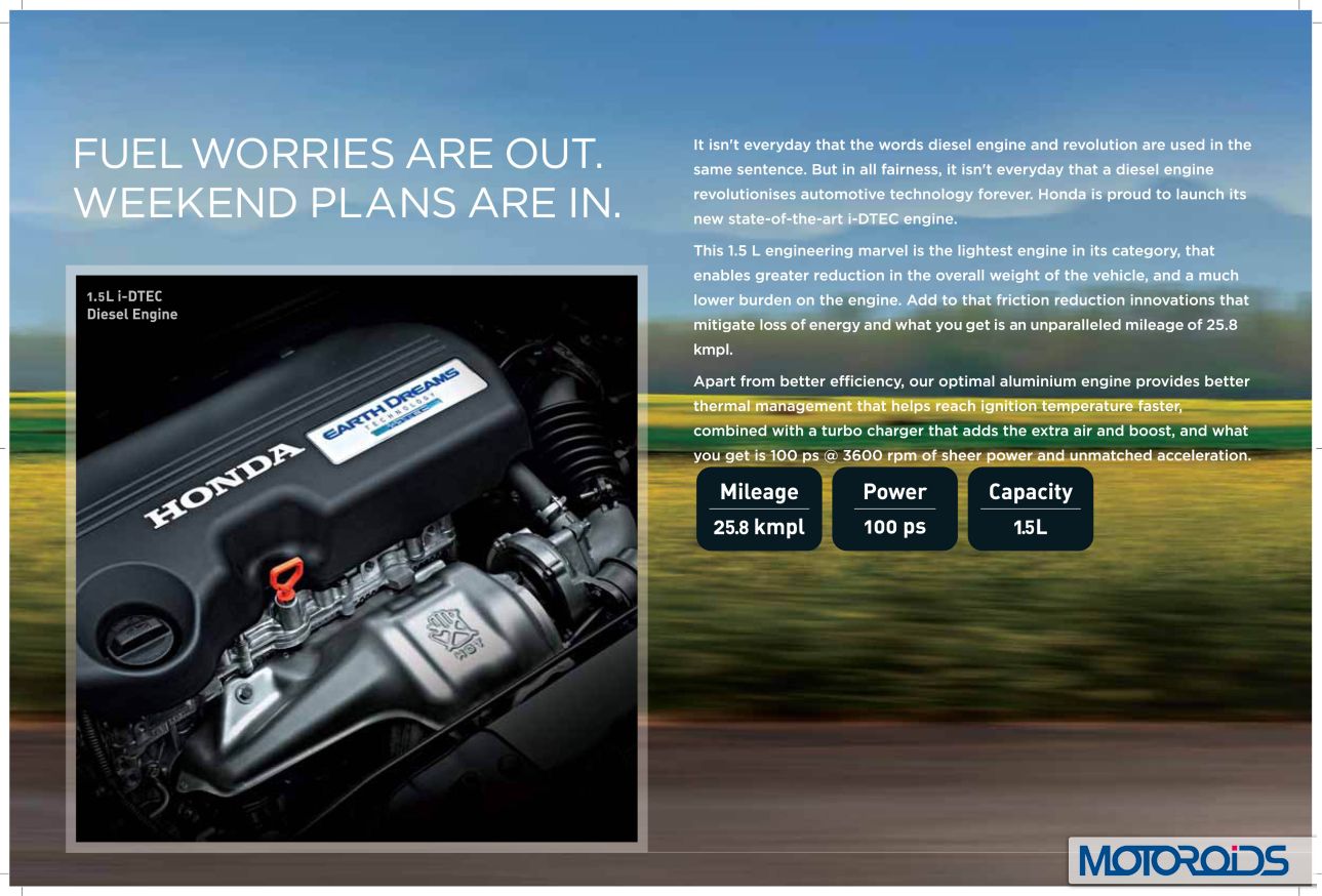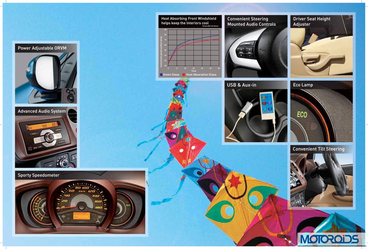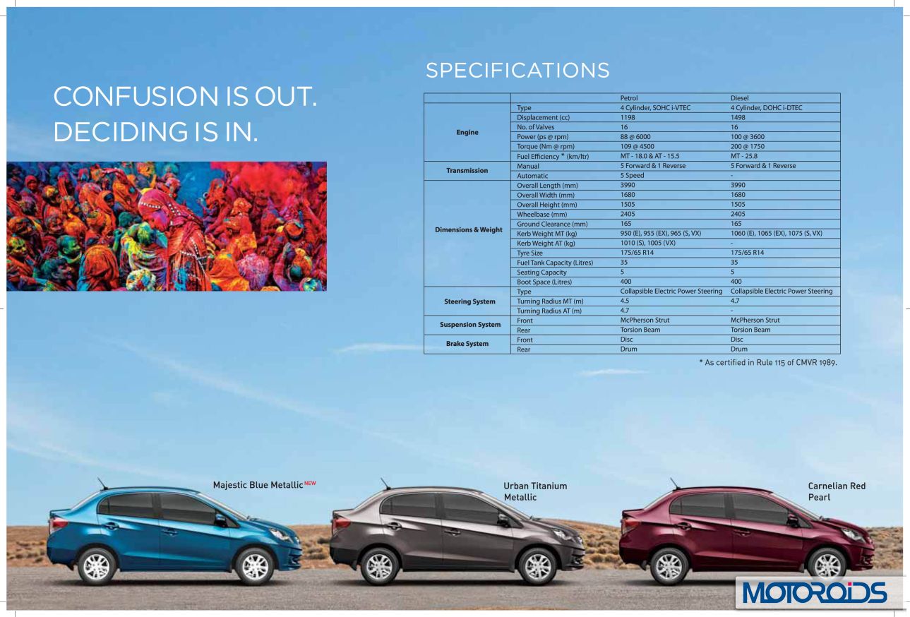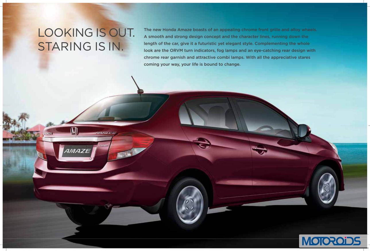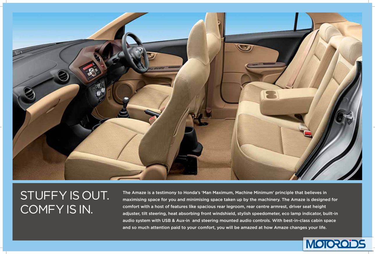 Honda Amaze’s official site is now live, and we have extracted jpeg images from the brochure to familiarize you even better with the various features and variants of the car. Here, have a look.