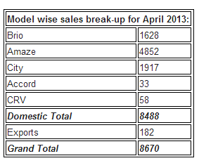 Expressing delight on the company’s performance Mr. JnaneswarSen, Sr. Vice President – Marketing &Sales, Honda Cars India Ltd. said, “April 2013 was a significant landmark in Honda’s journey in India. With new investments in Tapukar plant, launch of advanced i-DTEC diesel engine technology, and rollout of new family sedan Amaze, Honda has set on a new phase of growth in the country. Amaze has received tremendous response from the customers despite the slowdown in the industry. We are confident that Amaze will drive our growth in this fiscal.”