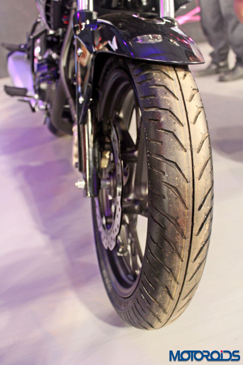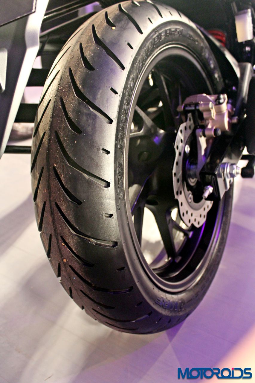 Wide 140 section MRF Nylogrip rubber at the back give it a meaty presence from the rear.