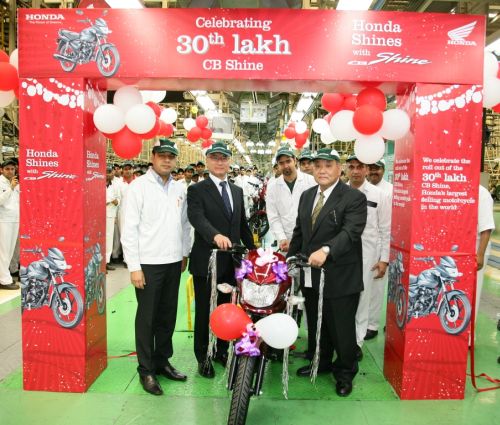 On this triple achievement of sorts, Mr. Keita Muramatsu – President & CEO, HMSI rolled out the 30th lac CB Shine at Honda’s second plant at Tapukara, Rajasthan.