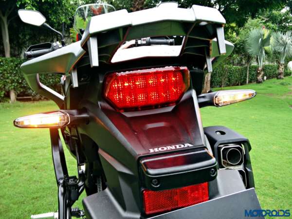 Honda has retained the dual headlight layout of the original Africa Twin, the XRV 750, but it added a pinch of future to the illuminator. Illuminating the path for rider is a pair of LED headlights. They’re not spherical like the XRV 750 but they get the curves. The black borders of the headlight give the new Africa Twin an aggressive fascia. The long travel suspension offers commendable clearance between the front fender from the headlight, in case you decide to go airborne. Just above the LED headlight is a pair of LED blinkers, placed on the edge of the fairing. On top is a non-adjustable windscreen that offers some solace from the windblasts. Tall riders may have to opt for the optional, high windscreen that’s available as an accessory. It offered pretty decent protection during our stint with the motorcycle in Udaipur but I honestly missed the Ducati Multistrada 1200 Enduro’s easy to adjust wind protector.