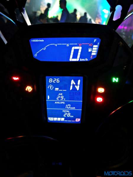We rode the motorcycle for 90 km, which cannot really be termed as a long ride but we didn’t have any complaints throughout the day. I wouldn’t call the saddle plush but it’s sufficiently padded to give your rear adequate comfort. The windscreen provided some solace from windblasts but I could still feel some amount of beating. You can’t adjust the level which was bit of a letdown and if you want a taller unit, you’d have to shell out extra moolah for the accessory screen.