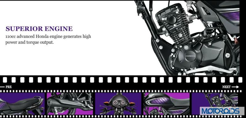 Developed specifically for India, the Dream Neo is powered by a 110 cc engine and is claimed to have a fuel efficiency of 74 kmpl. The motor has its peak power rated at 8.25bhp @7500rpm and max torque of 8.63nm @5500 rpm, which is class leading.