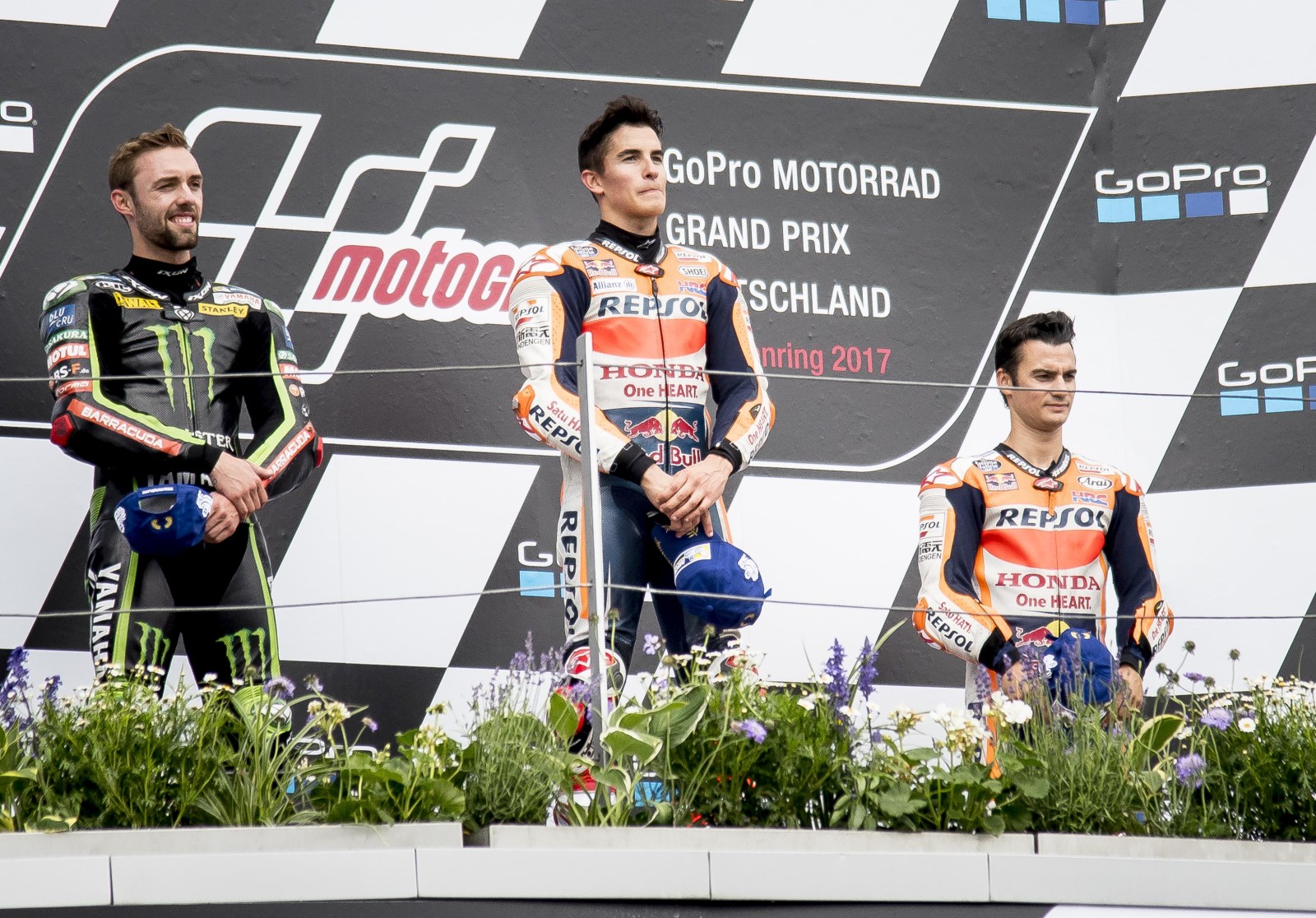 Each race in the Constructors championship, bike manufacturers are awarded points equal to their best rider’s result. The title is determined by the total points earned. Honda’s title was won by the combined efforts of Repsol Honda Team’s Marc Marquez and Dani Pedrosa on Honda factory bikes, and LCR Honda’s Cal Crutchlow.