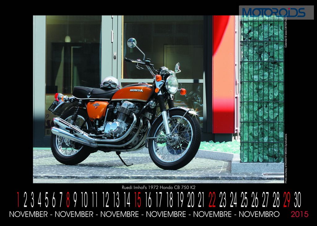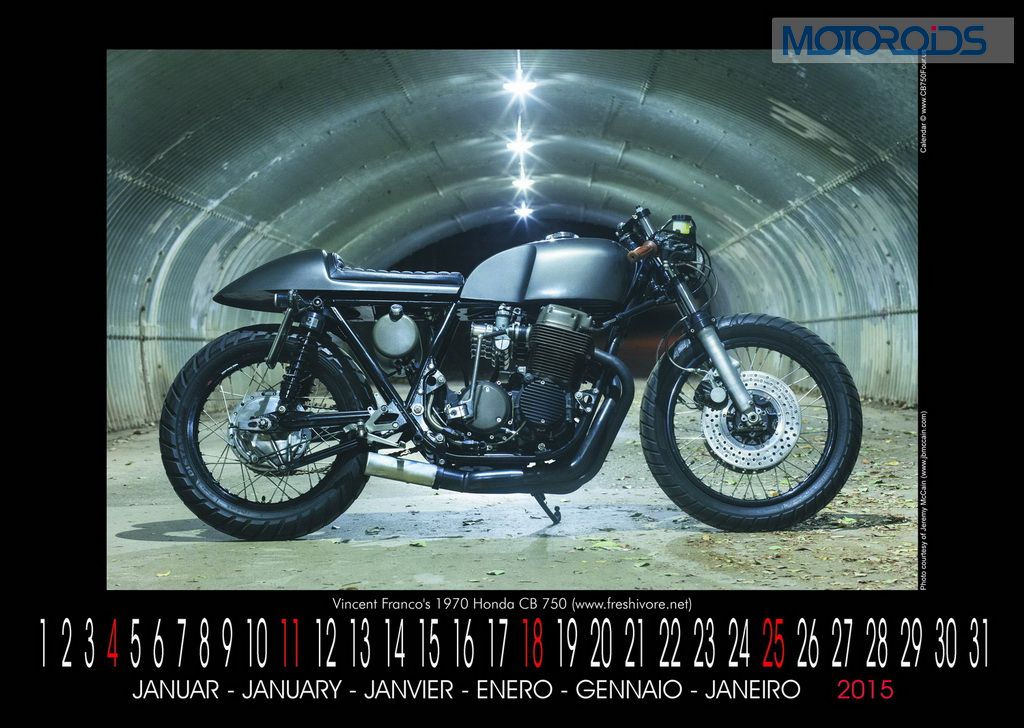 The year is about to end and it’s time to start looking out for a new calendar for your walls. The task is particularly difficult for petrol heads as they have to choose from so many beautiful machines. The latest calendar comes from Japanese motorcycle major Honda and is named as CB 750 2015. The theme of the calendar is based on Honda’s CB 750 motorcycle that is powered by inline four-cylinder engine capable of producing 67 horsepower and achieving a top speed of over 200 km/h (125 mph)