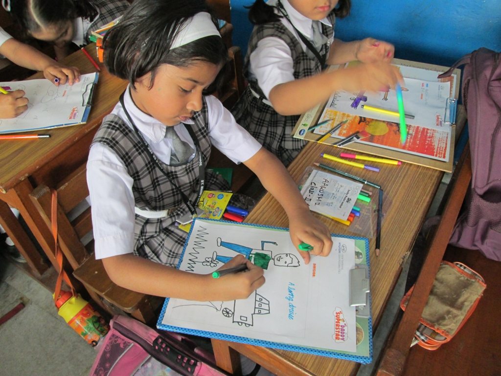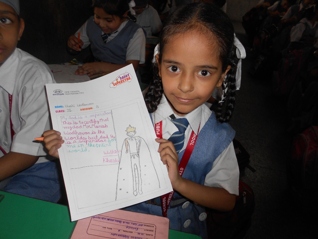 The students from 1st- 3rd standard were asked to sketch a portrait of their fathers and students from 4th – 5th standard were to write an essay to express their love and affection towards their father. The concept behind the “My Daddy My Superstar” campaign is to promote the “Drive Safe” and to portray a strong emotional bond of a child and the father.