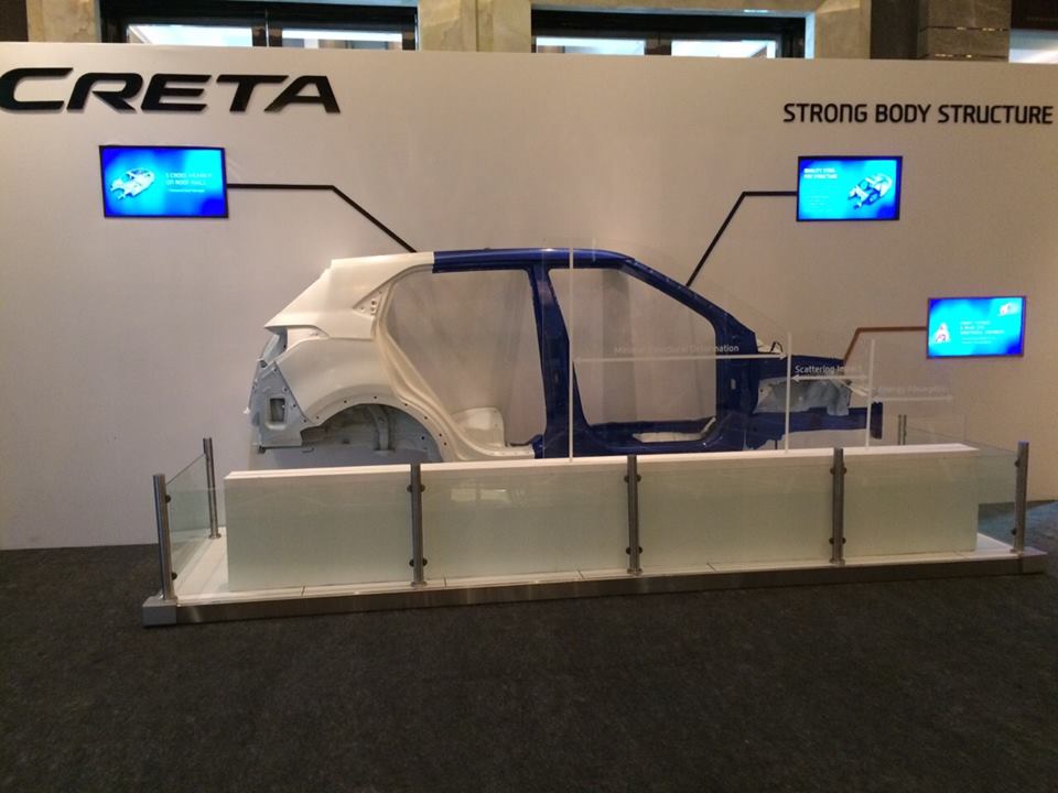 *The Creta is designed with strong ‘Hive structure’ body shell that denotes high structural strength stability and sturdiness. The ring shaped frames applied at B-Pillar, C-Pillar and engine bay helps to achieve high body rigidity, improved durability and crash performance. The ring frame structure realizes a significant increase in body stiffness, which contributes to more precise handling while maintaining excellent ride quality.