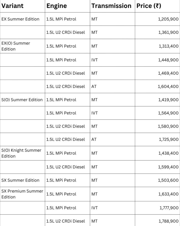 The Summer Edition starts at Rs 12.05 lakh and goes up to Rs 17.89 lakh ex showroom.