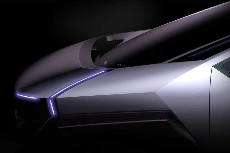 The front lighting has a split look with a strong LED pattern. The bonnet is short and pushes the windscreen far back. This gives a stretched glass feel which may connect into a full glass roof.