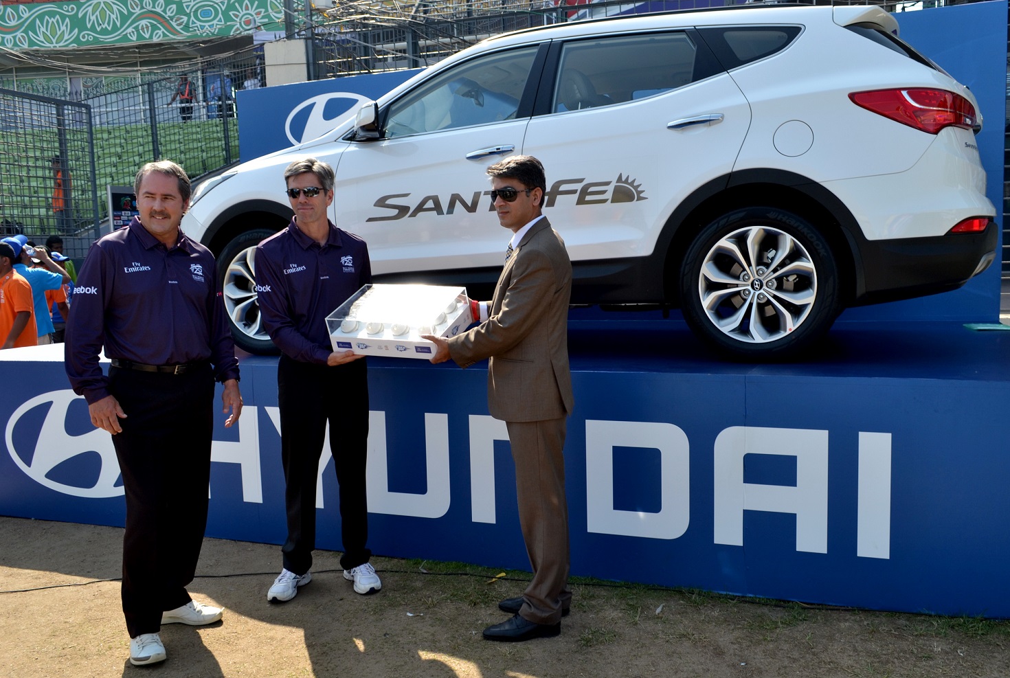 Hyundai Motor India Limited (HMIL), the official partner for International Cricket Council (ICC), today handed over the ‘First Ball’ for the ICC World T20 2014. Hyundai holds the exclusive rights for the First Ball Handover before the opening match between Bangladesh and Afghanistan. At the ceremony, the set of First Balls were handed over by AashishBhardwaj, Asst. General Manager–Advertisement, HMIL to the ICC Umpires Nigel Llong and Richard Illingworthat Sher-e-Bangla National Stadium, Mirpur, Dhaka in Bangladesh.