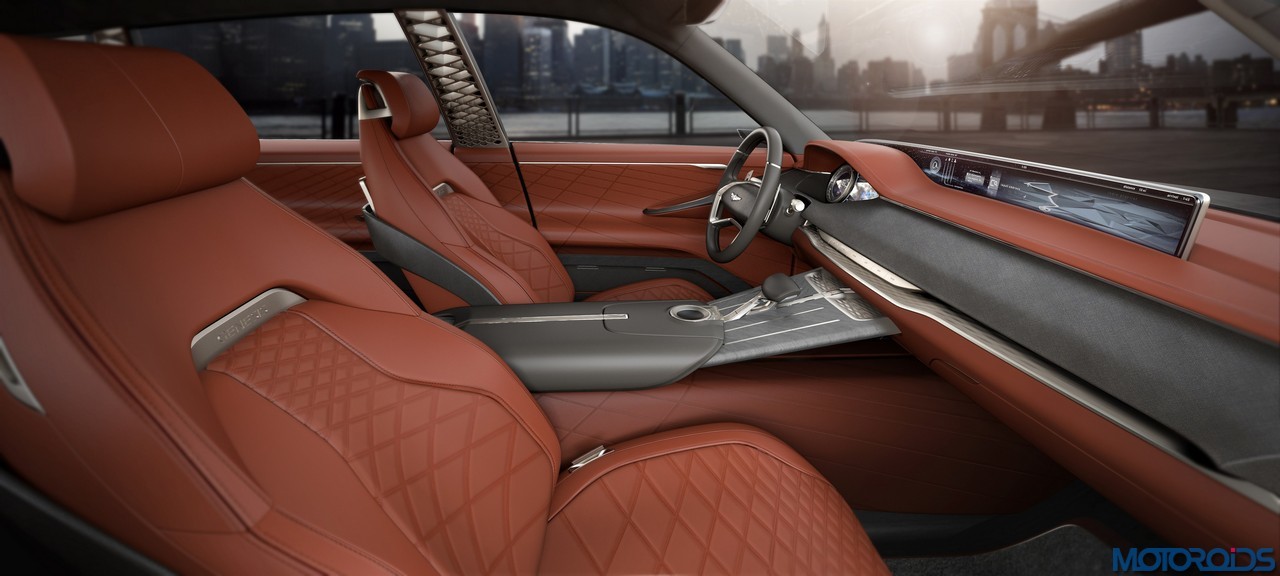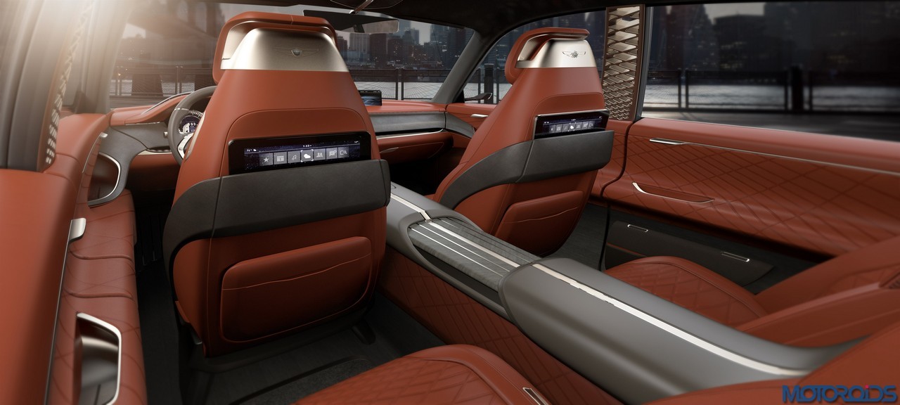 The GV80 Concept’s interior environment showcases a combination of high-quality materials, vibrant colors and rich textures. The GV80 features semi-aniline leather interior, with quilted diamond stitching on the interior door panels, seat inserts and center console side.