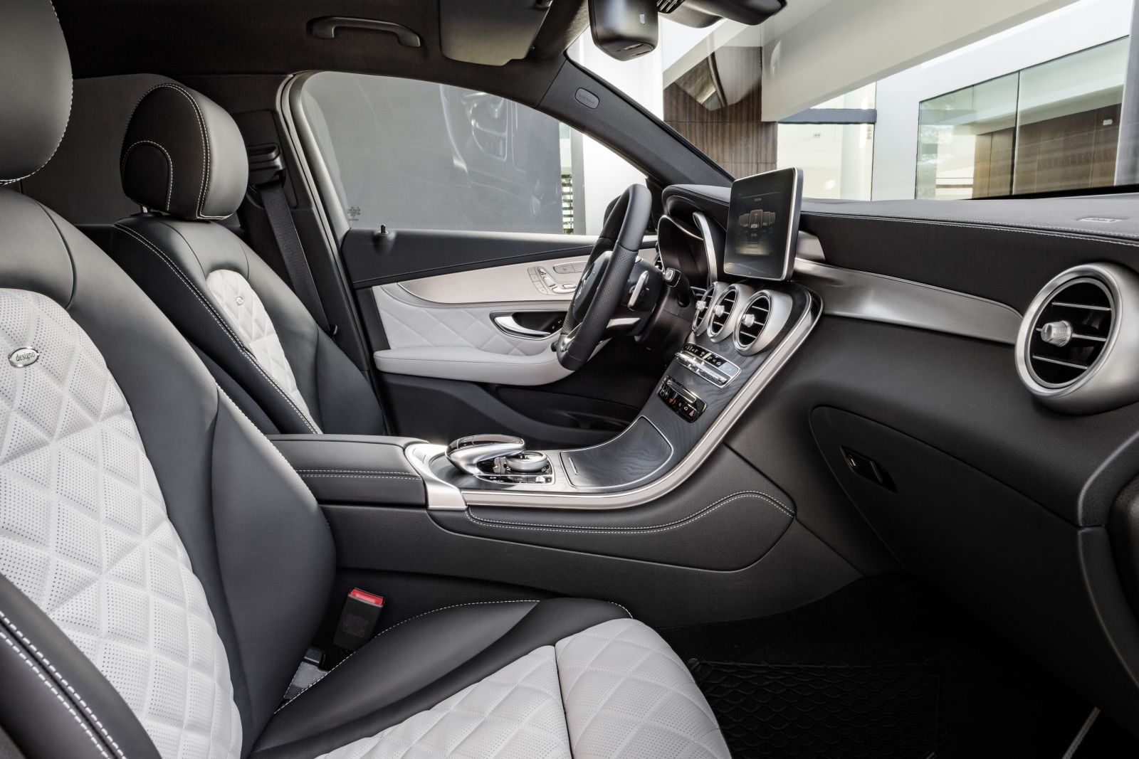The Premium and Premium Plus packages are available as options across the GLC Coupé range. The Premium package (£1,495) includes ambient lighting, sliding glass sunroof, Keyless-Go comfort package and memory package. To this the Premium Plus package (£2,795) adds: COMAND Online infotainment system and Burmester surround sound system (consisting of 13 speakers).