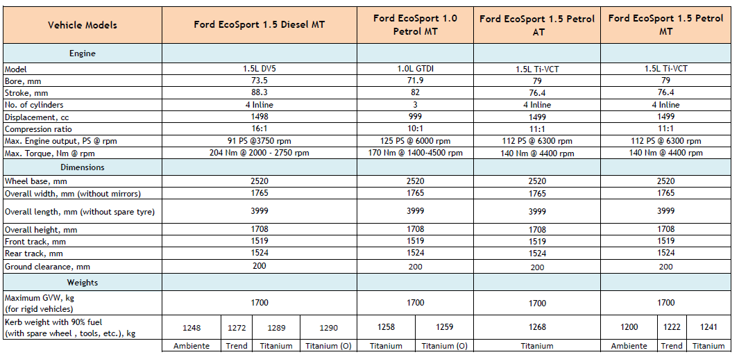 Here we have put up the specs of the upcoming car. Also check out the EcoSport, with beautiful Goa in backdrop, in the images.