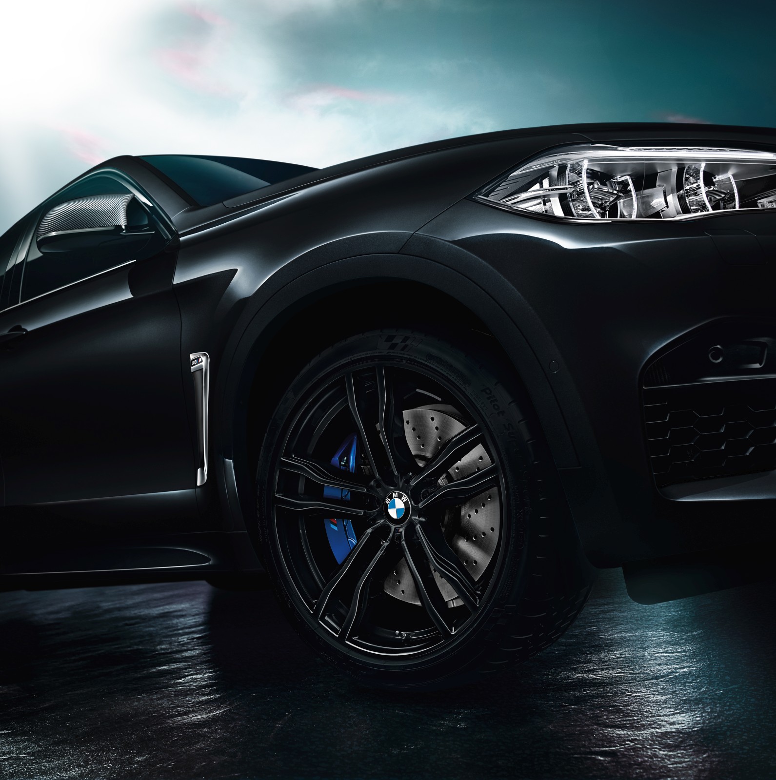 This also applies to the forged 21-inch M alloy wheels in black. These large wheels with mixed-sized tyres (front: 10 J x 21, rear: 11.5 J x 21) are weight-optimised. Another distinguishing feature of the Black Fire Edition are the standard carbon mirror caps. They accentuate the lightweight design of both models and show the close relationship between both the BMW X5 M and BMW X6 M and motorsport.