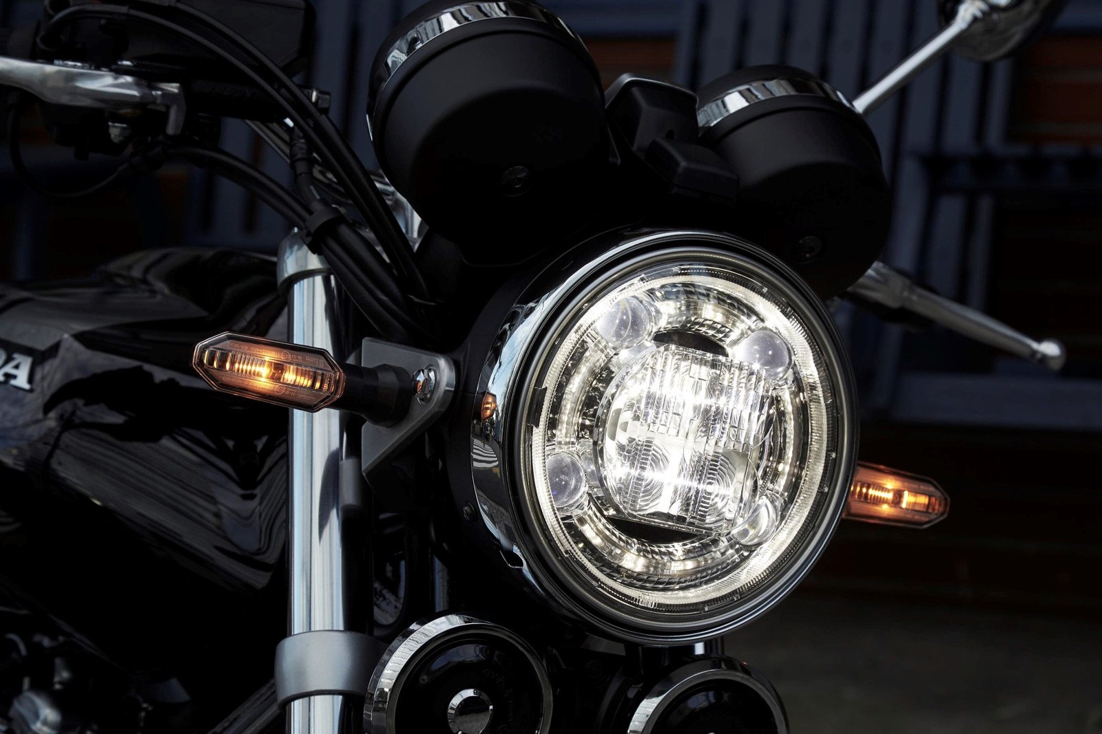 The CB1100 EX outlines the proportion and silhouette of a true 1970s superbike. Its curvaceous fuel tank – made without seam-welded lips – evokes hand-made craftsmanship, while the single round headlight and twin instrument dials denote Hondas from a bygone age.