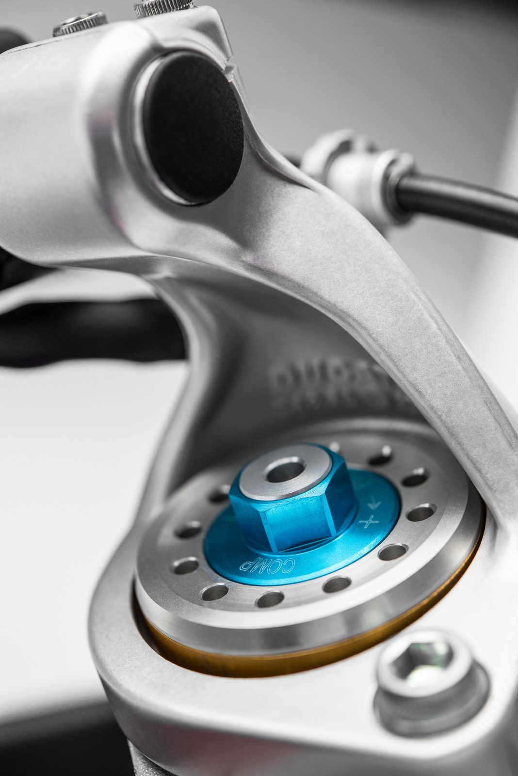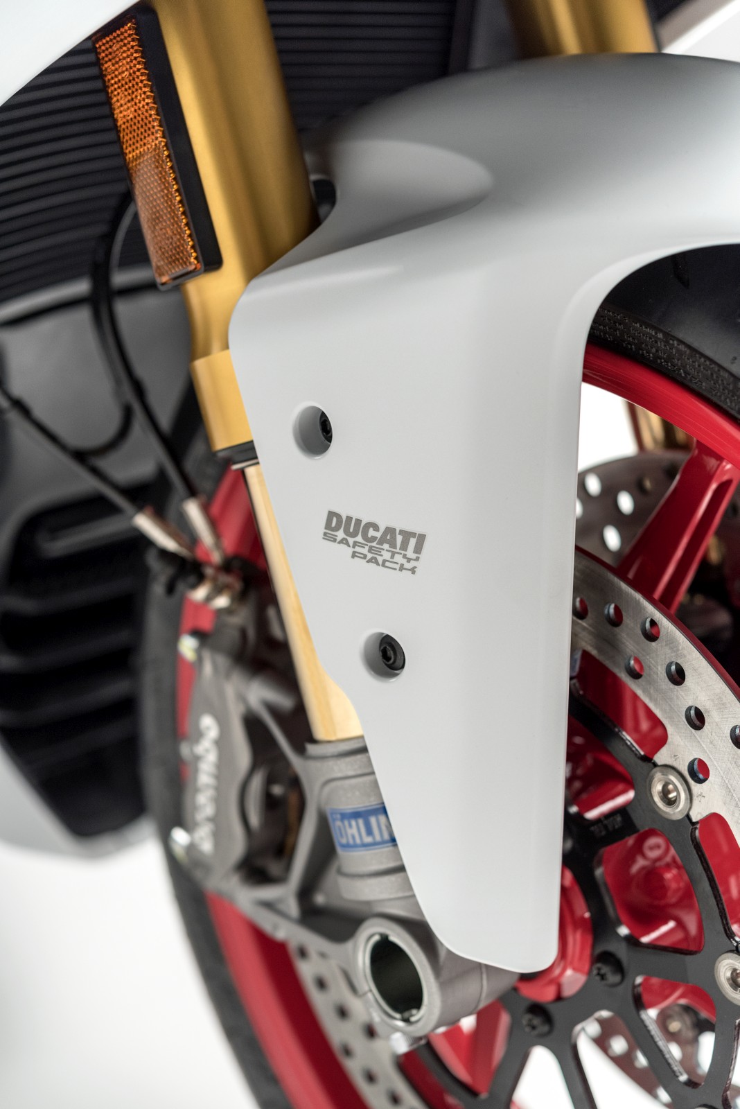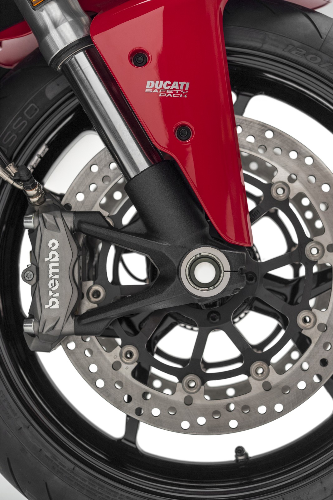 The standard model gets fully adjustable 41 mm Marzocchi fork upfront and Sachs shock that’s adjustable for spring pre-load and rebound damping at the rear. The SuperSport S version which features fully adjustable Öhlins suspension, the Ducati Quick Shift up/down system and a rear seat cover: the latter are also available as accessories for the SuperSport.