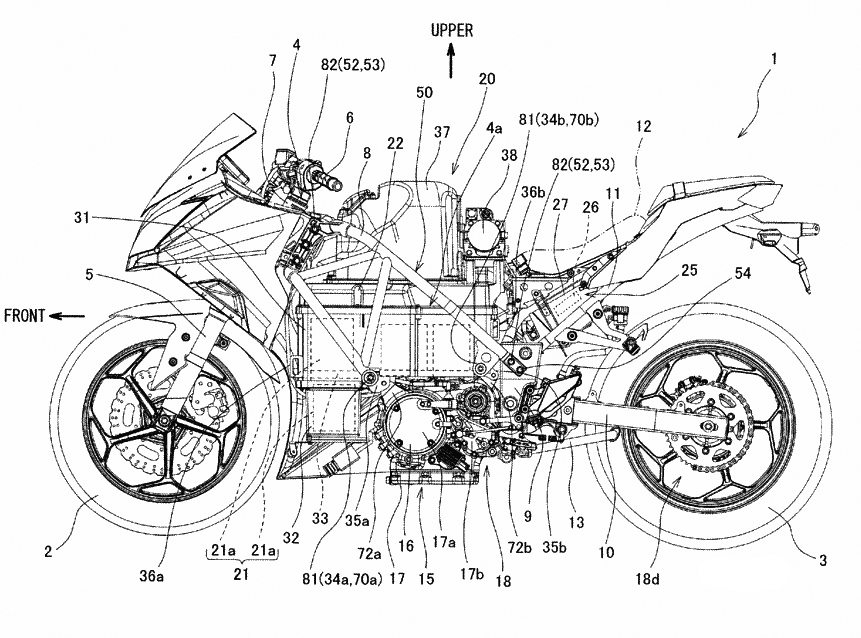 In March this year, we stumbled upon some crude patent images, claimed to be of a new Kawasaki motorcycle that would be powered by an electric motor. The patent images that were leaked early this year came soon after Kawasaki reportedly registered Ninja E2 and E2R trademarks. We didn’t come across much details on that front, till now. This time, we found some clearer and detailed leaked patent images of a Kawasaki Ninja electric motorcycle courtesy UK based website MoreBikes.