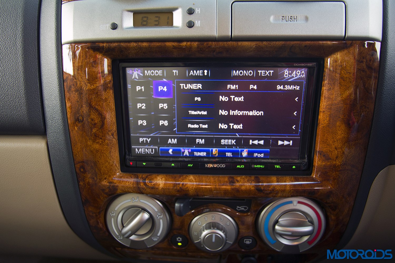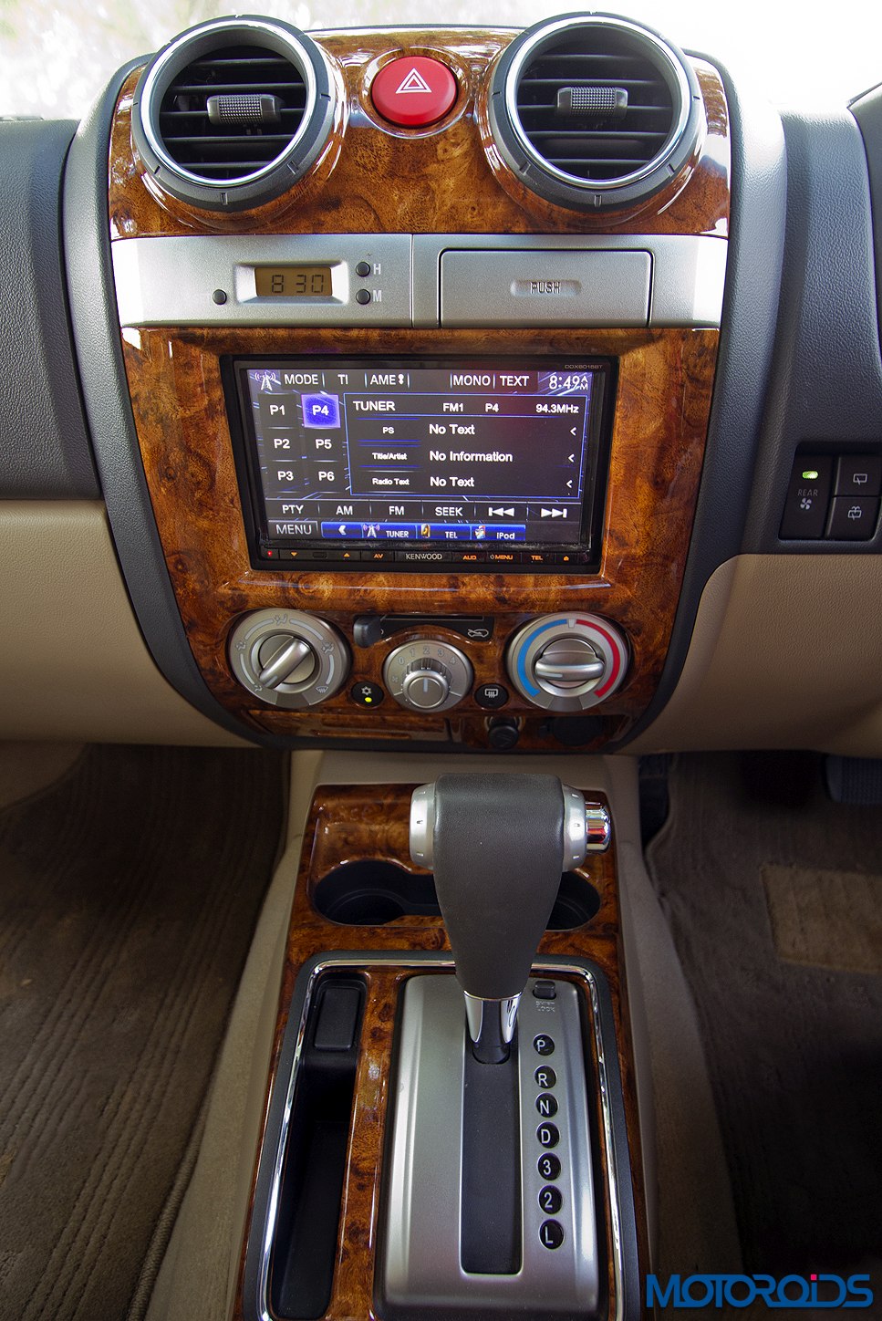 Another omission is automatic climate control. Central console has large knobs for AC control, which are quite convenient to use. The small buttons for AC on/off toggle and defogger however are disproportionate to the rest of the AC setup. The touchscreen multi-functional display controls the audio system, phone and is equipped with Sat Nav, which is a good feature to have. The controls on the central screen are very small and hard to operate, though. We suggest one uses the remote controller instead.