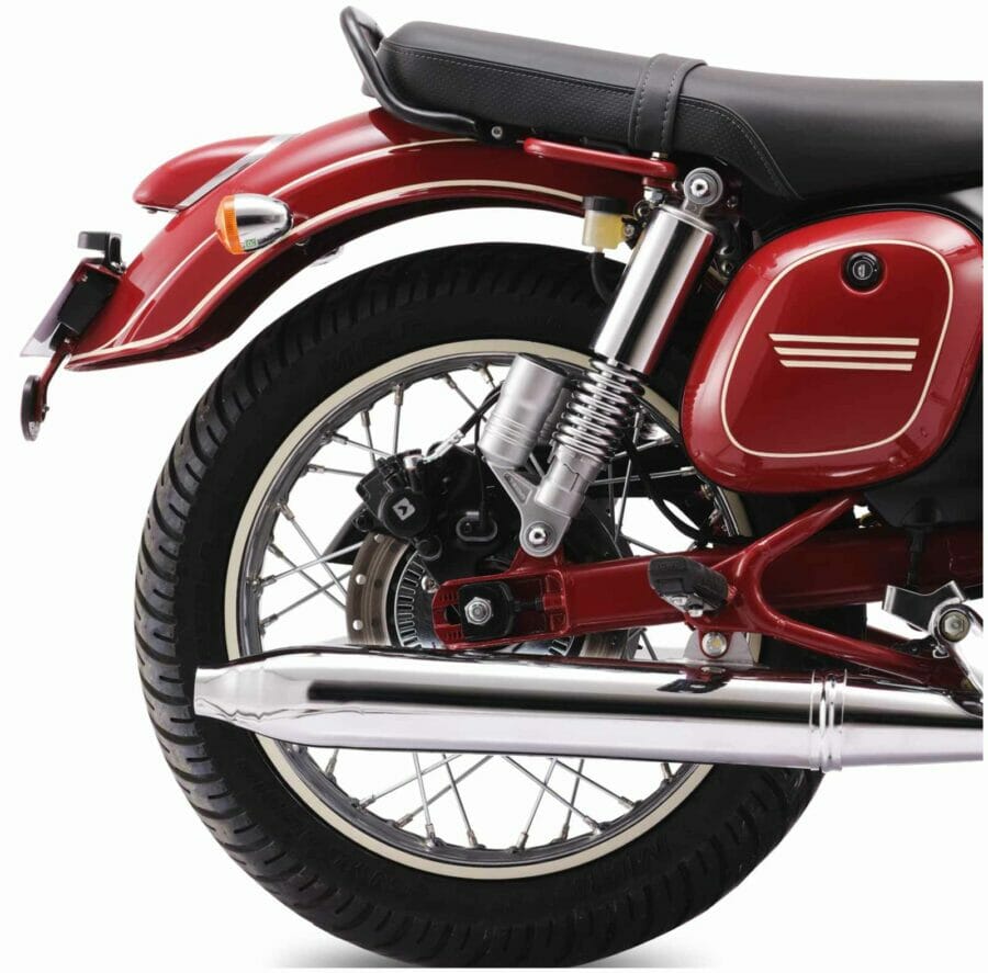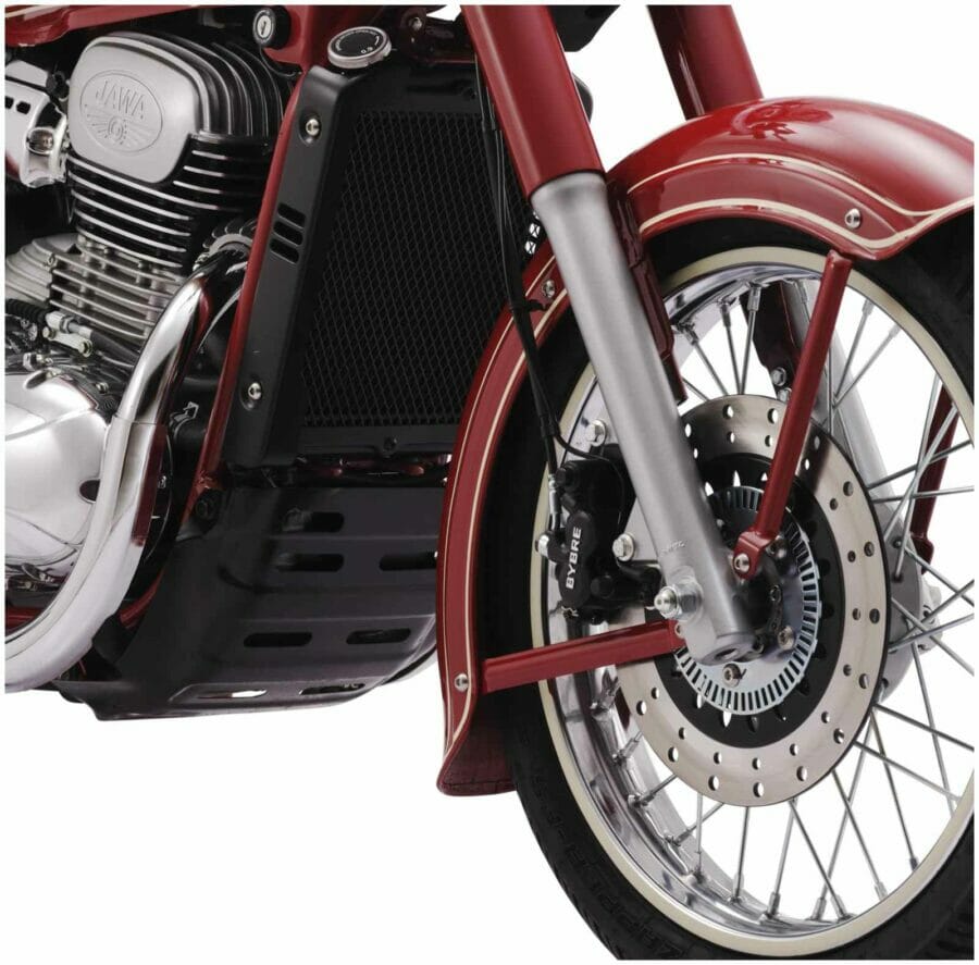 Mechanically, the special edition model continues to use the same 293cc single-cylinder, liquid-cooled DOHC engine as on the standard motorcycle. This engine can develop 26 PS of power and about 28 Nm of peak torque. The engine comes paired with a 6-speed gearbox and features a twin exhaust pipe. For a smooth and comfortable ride, the motorcycle uses telescopic hydraulic forks at the front and gas canister twin shock hydraulic springs at the rear. Braking duties are taken care of by dual-channel ABS with a 280mm disc at the front and a 240mm rear disc with floating callipers. The motorcycle is fitted with an 18-inch front wheel and a 17-inch rear wheel. The Jawa weighs in at about 170 kgs, while the seat height is 765mm. The fuel tank has a total capacity of 14 litres.