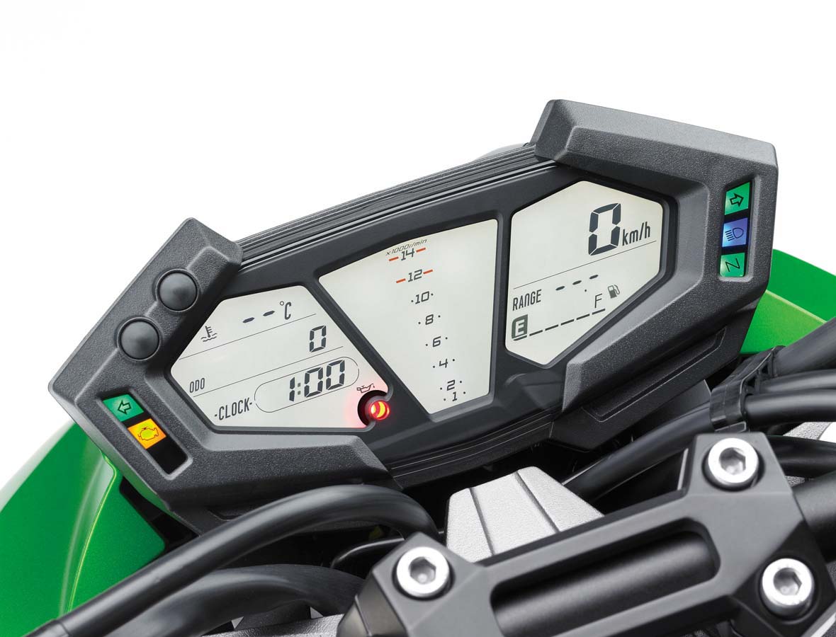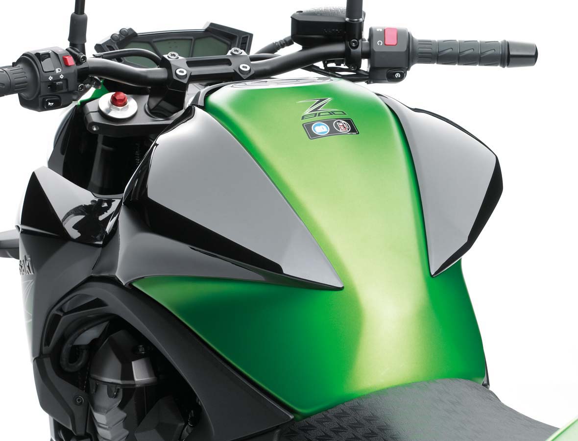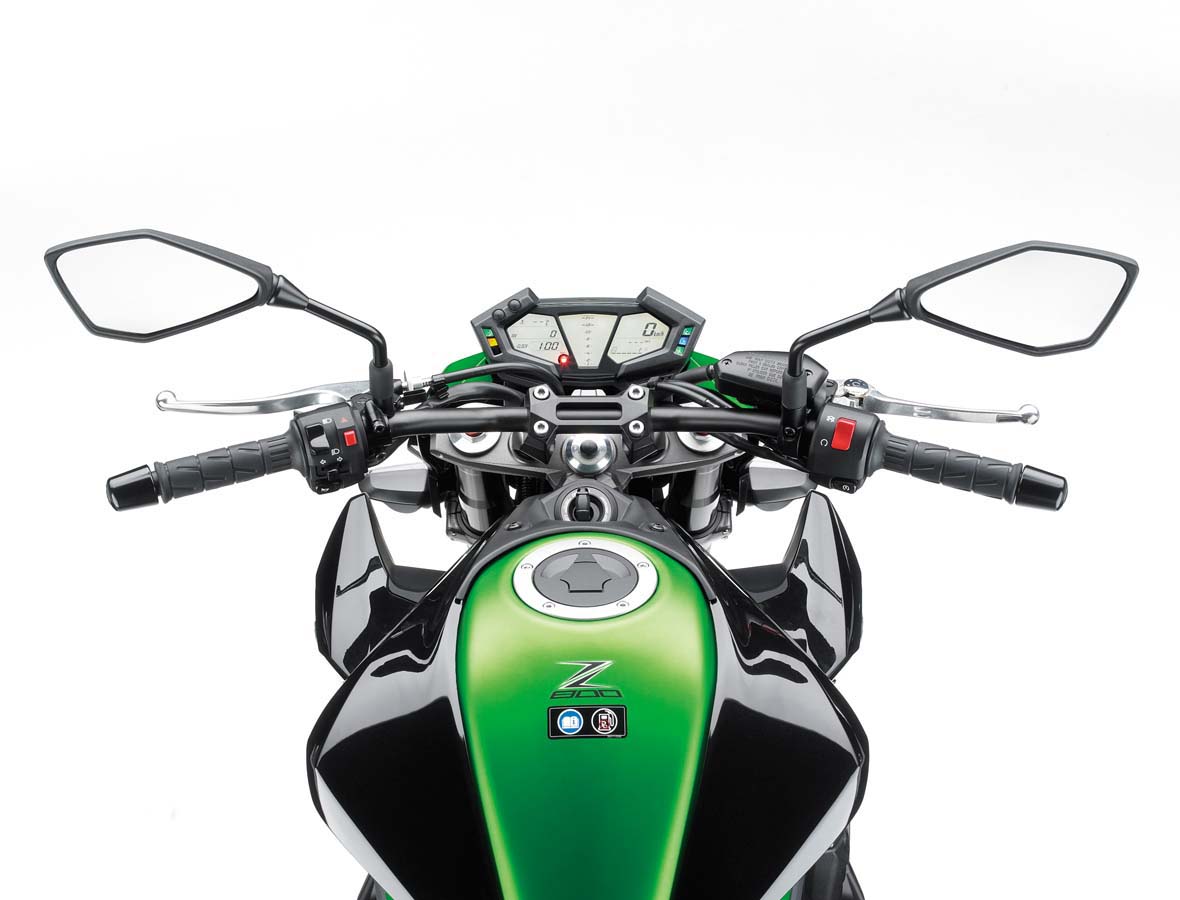 The chassis has been modified for better balance and communication for the rider. Upside down front forks, modified rear monoshock and a more neutral riding position further work towards making the Z800 a more rider friendly machine. Other changes include updated 4 piston – 310mm twin front discs, a futuristic full digital instrument cluister, LED tail-lamps and optional ABS.